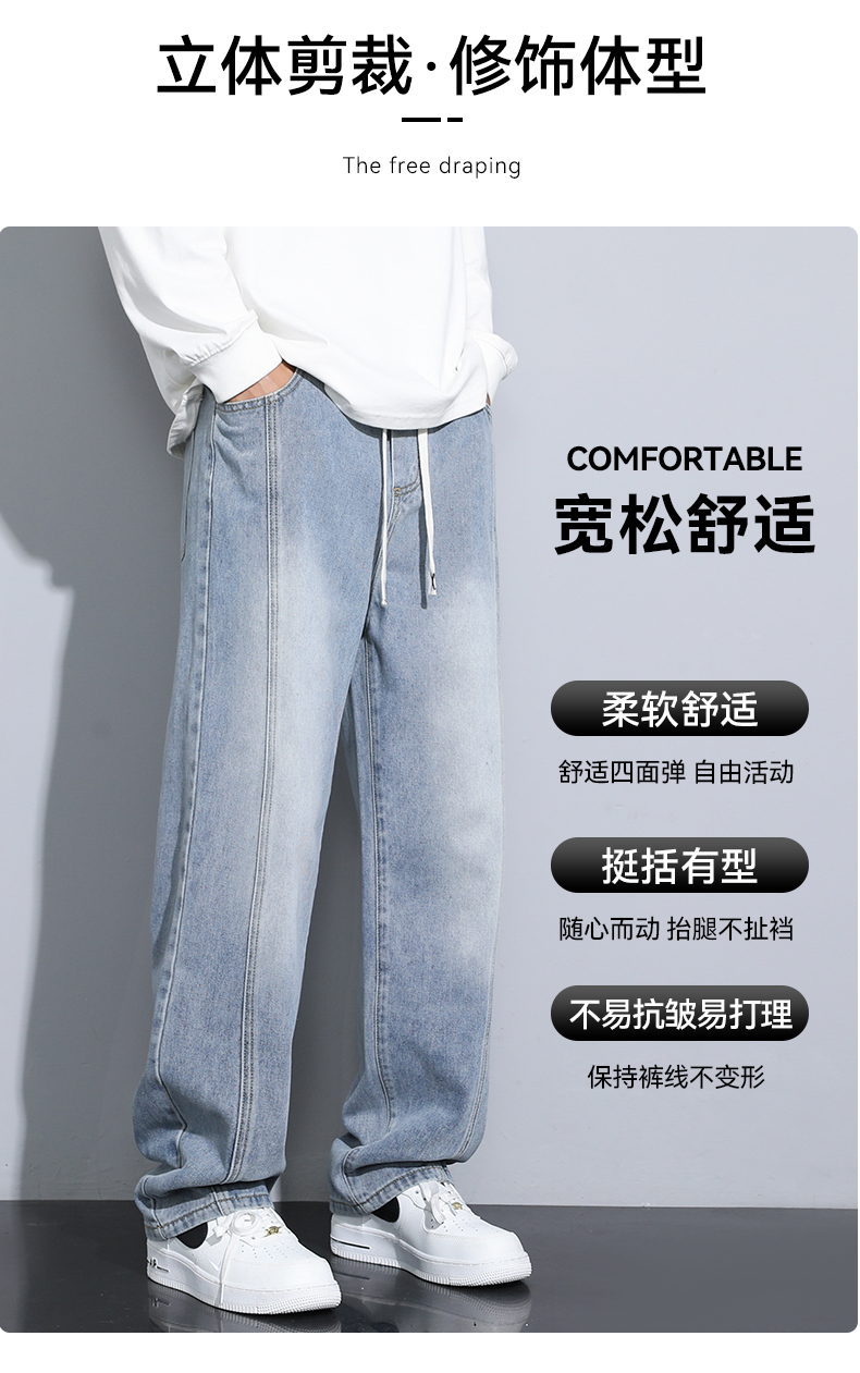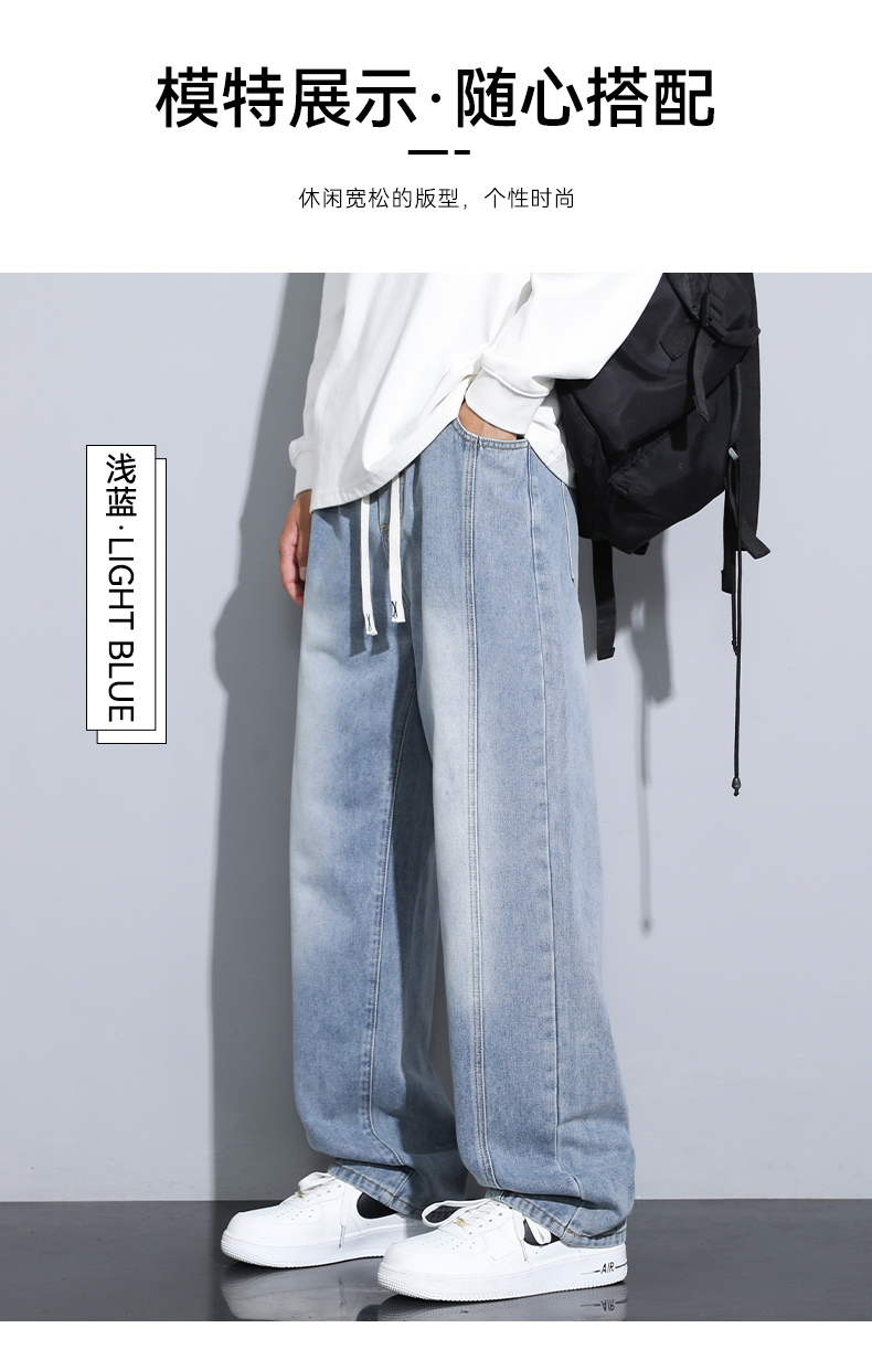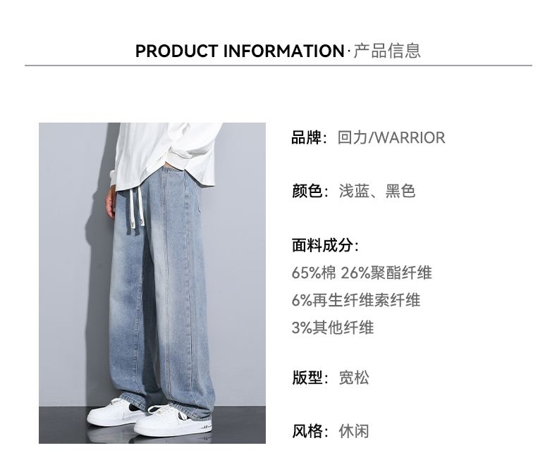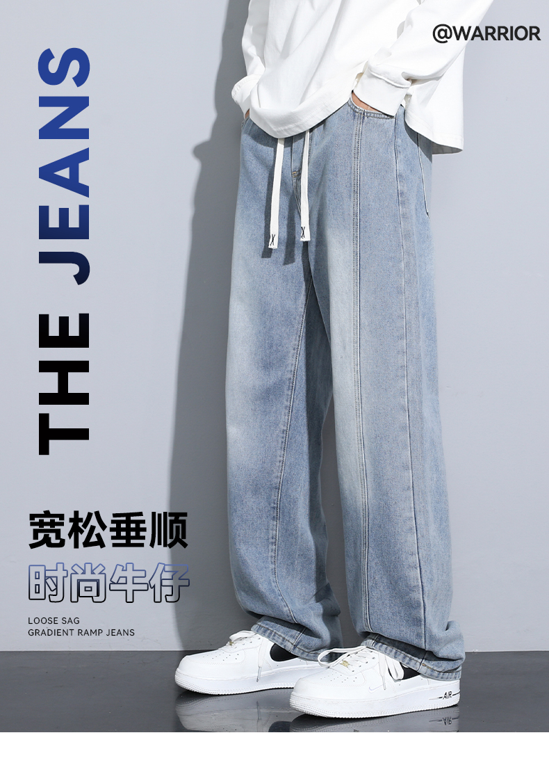 回力牛仔裤男款2025新款美式阔腿长裤青少年直筒宽松夏季薄款裤子