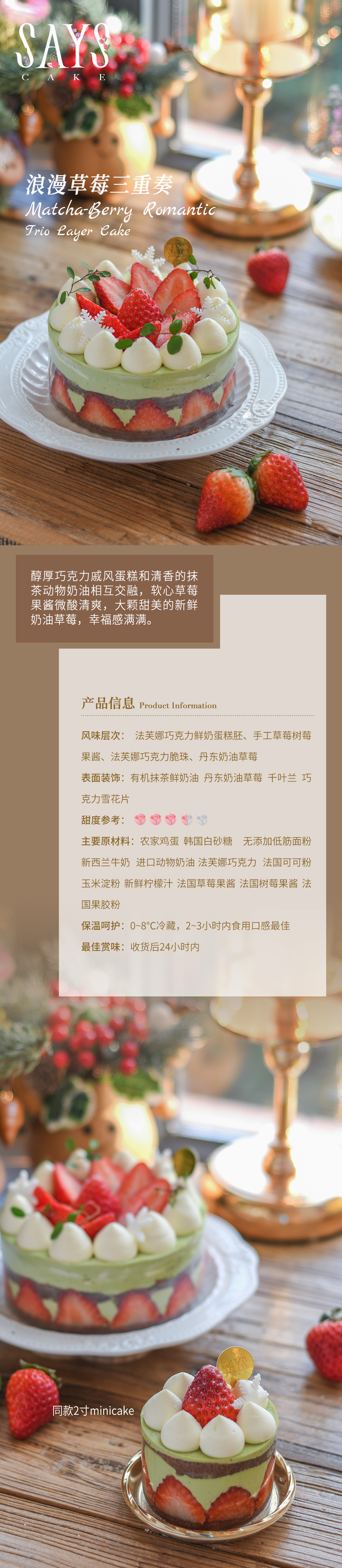 浪漫草莓三重奏Matcha-Berry Romantic Trio Layer Cake