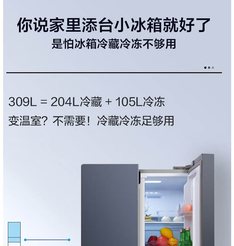 康佳(KONKA)309升 十字对开门冰箱 伯利兹蓝系列_BCD-309WD4EGL【盈】