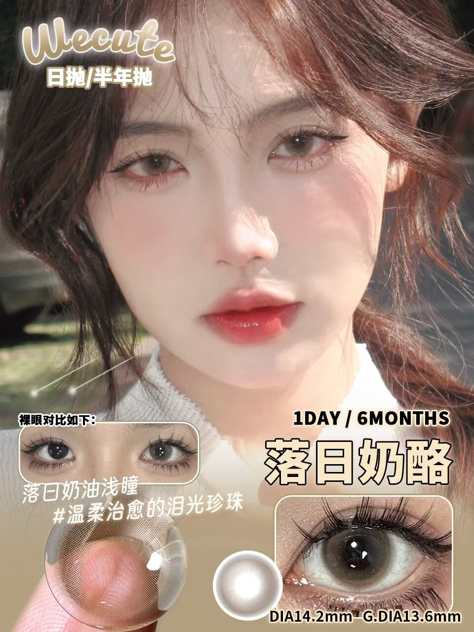 wecute日抛 泰式奶蓝/蜂窝奶茶/冰透椰青/落日奶酪 蓝/绿/棕 14.2mm 一盒十片装 日抛无售后