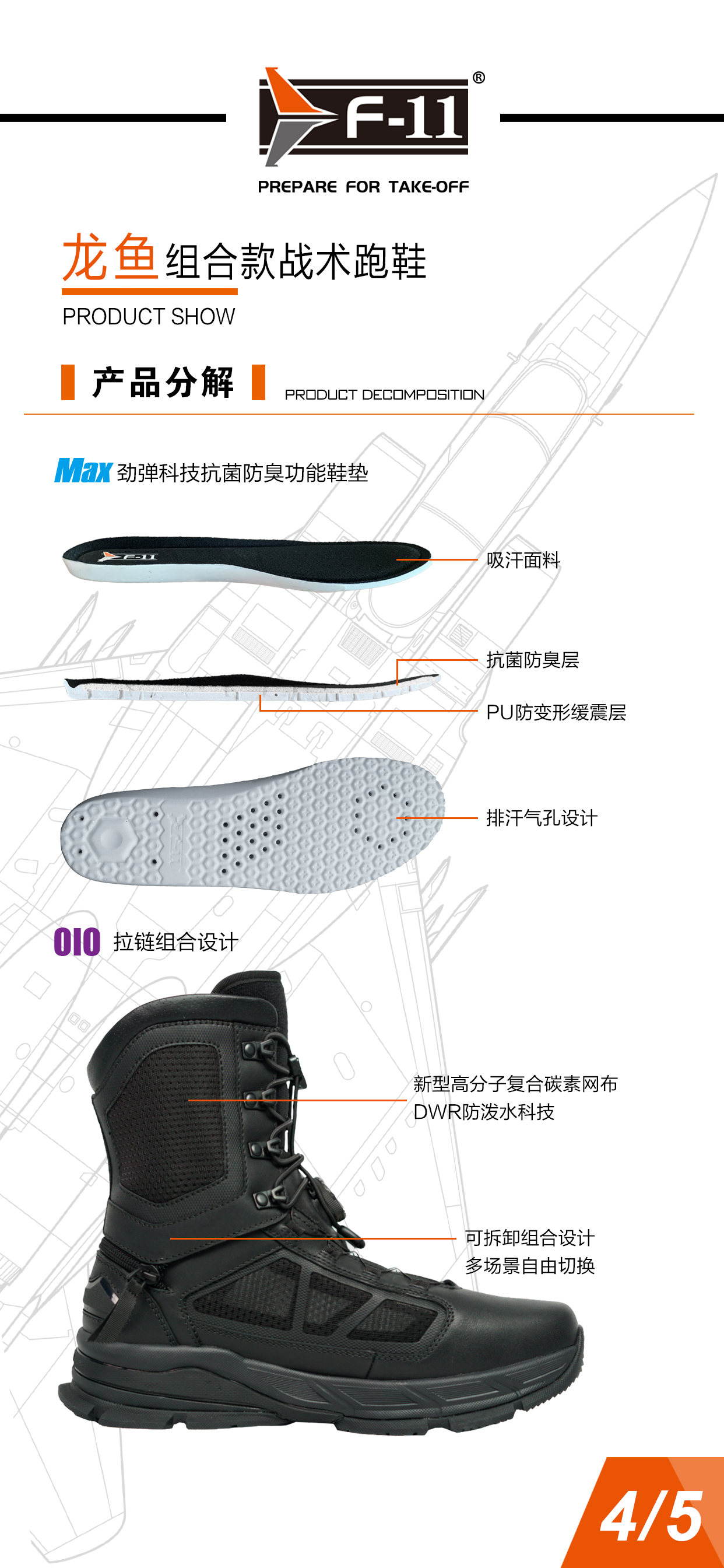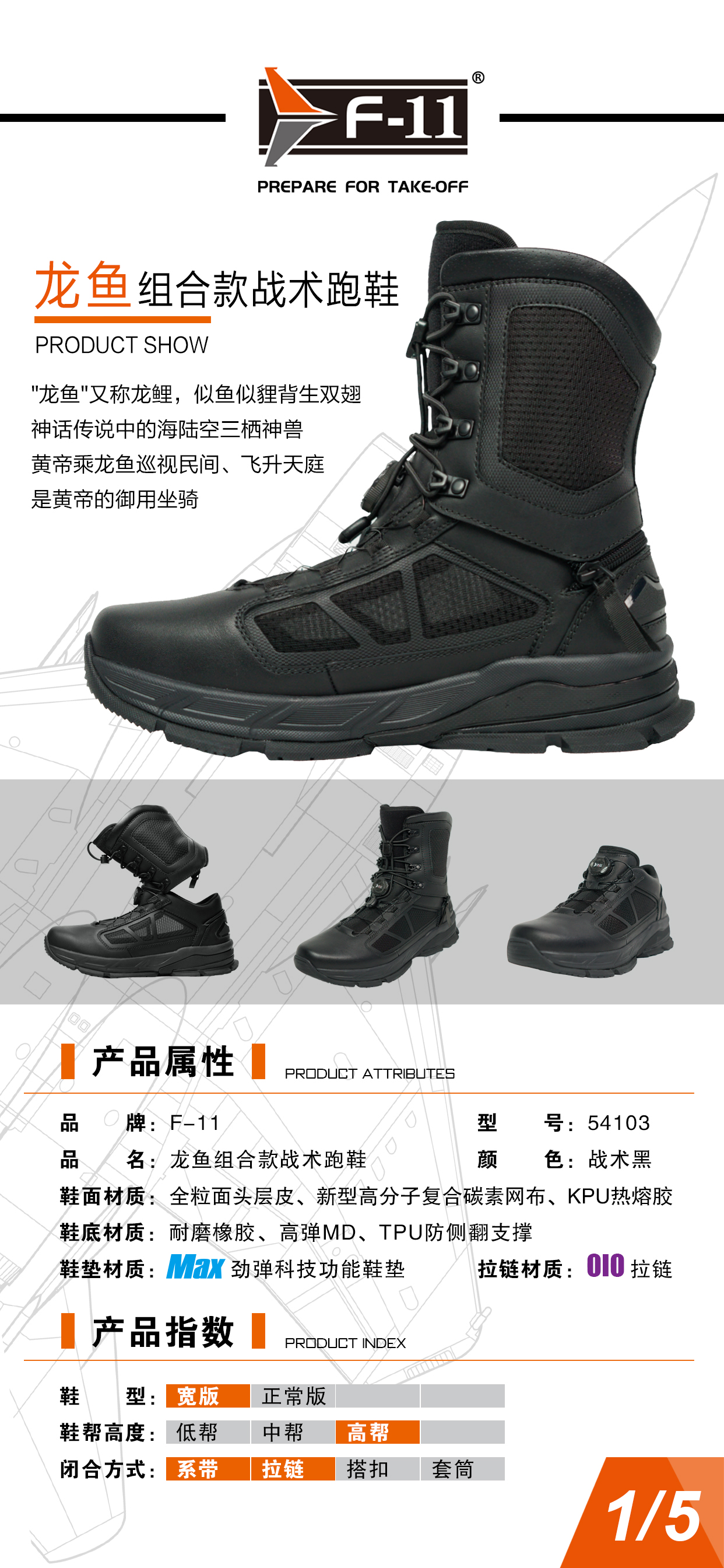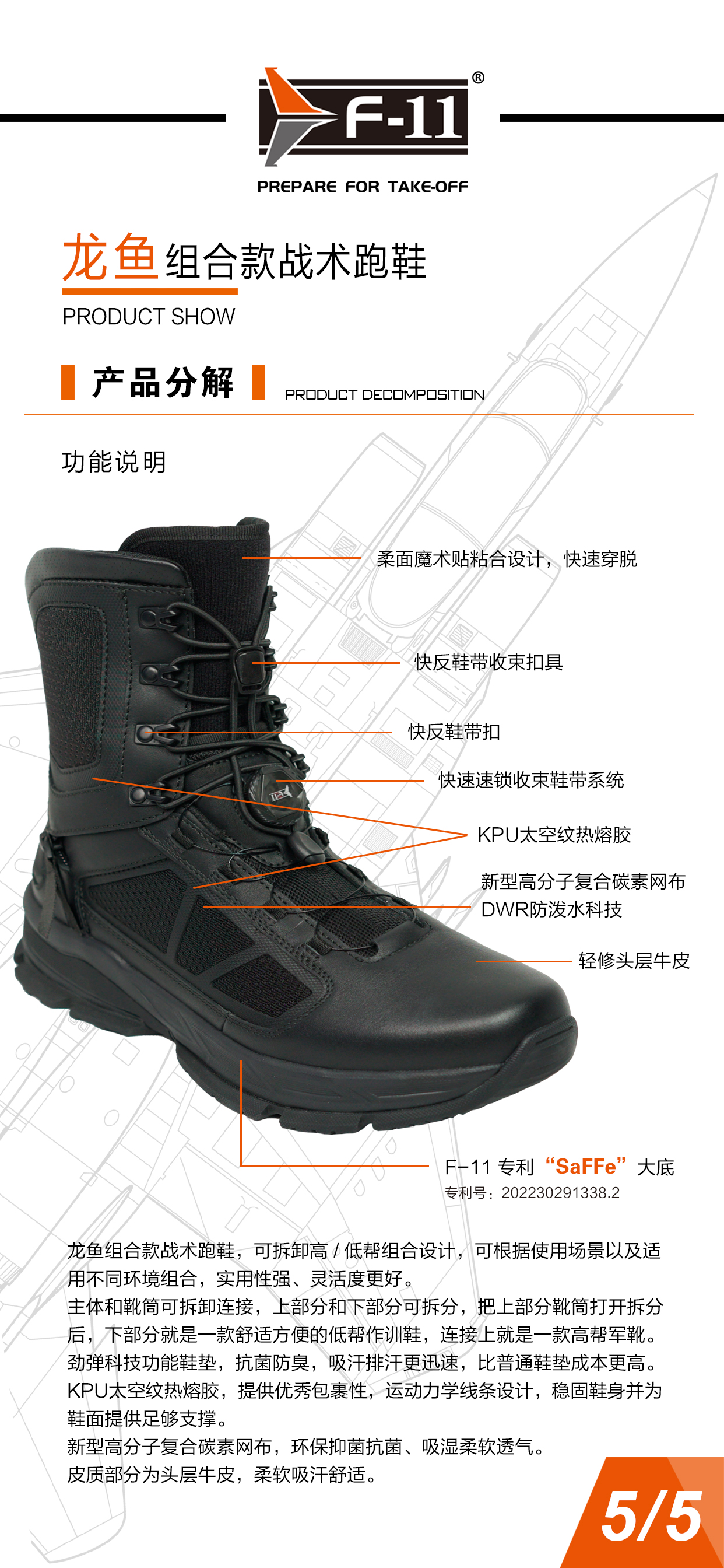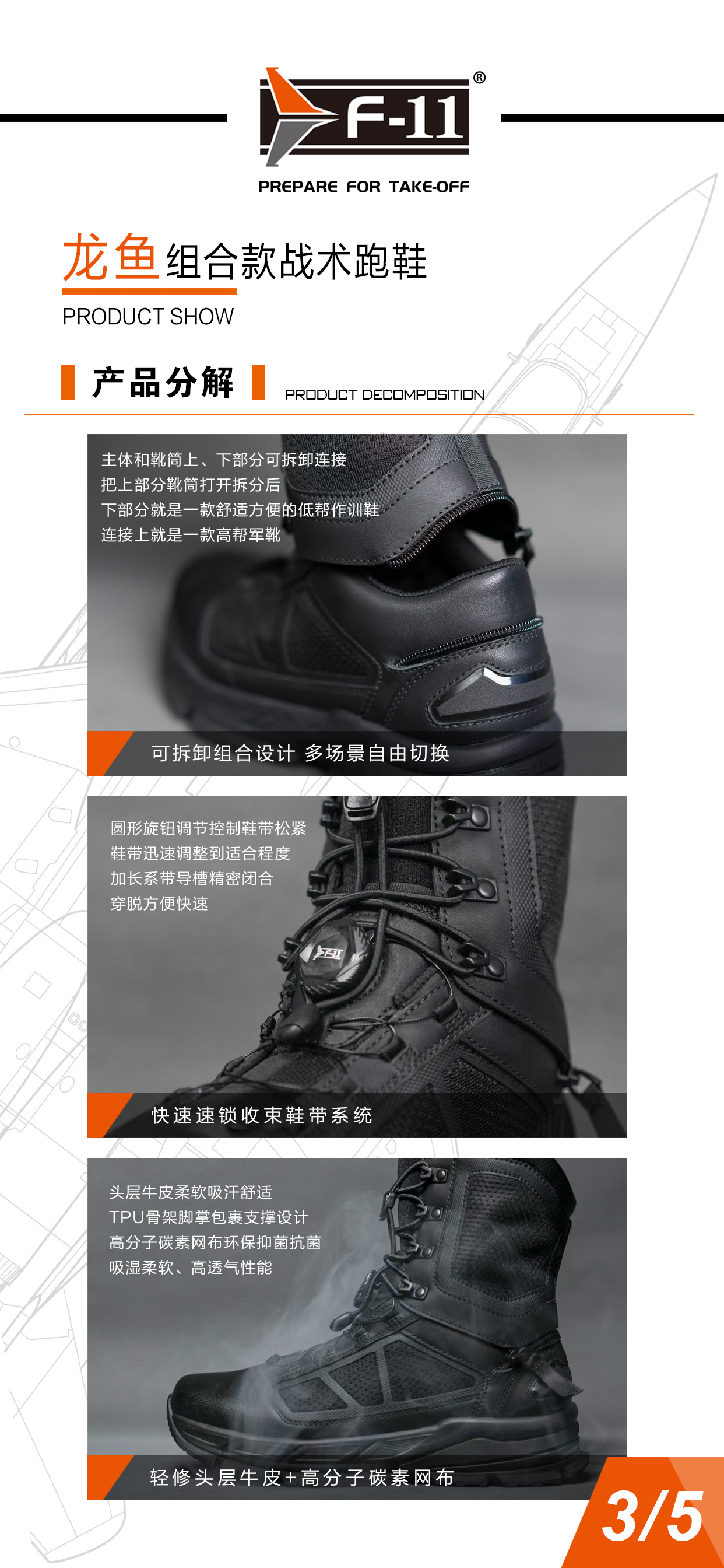 F11 龙鱼组合款战术跑鞋 头层皮轻便透气减震可拆卸高/低帮跑鞋