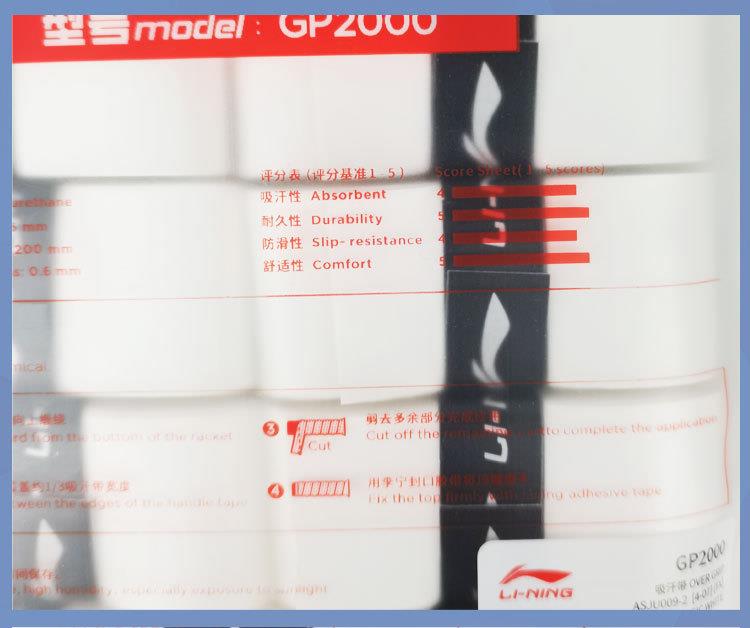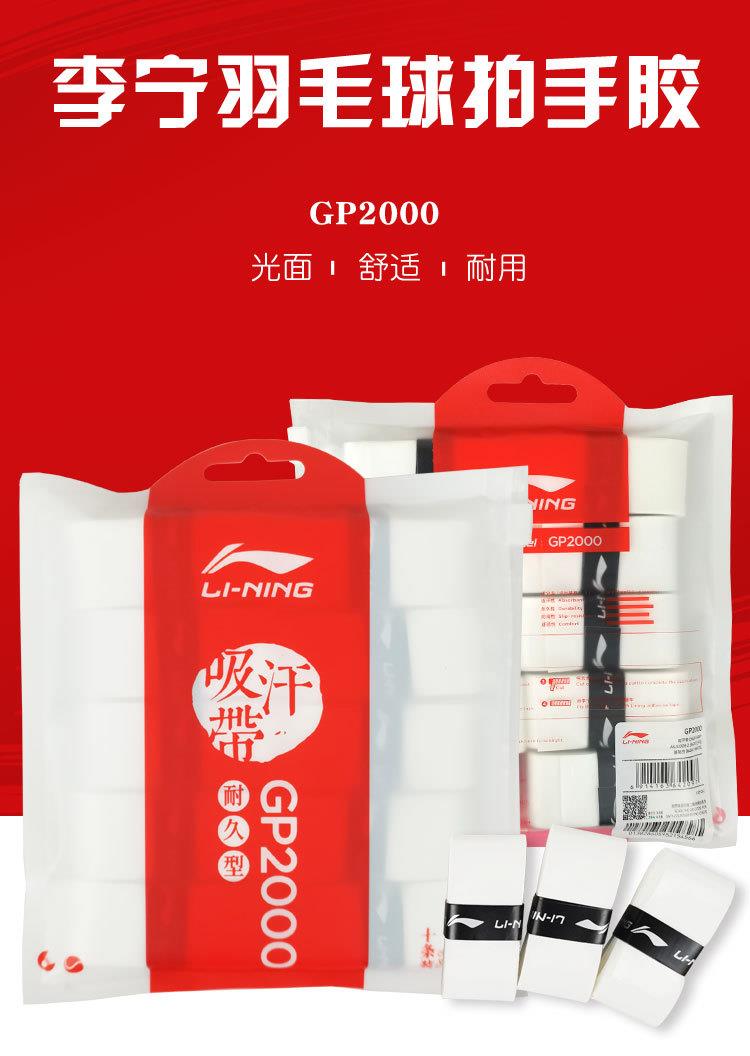 李宁羽毛球拍手胶吸汗带GP2000防滑耐磨PU光面粘性网球缓震握把胶(10条)