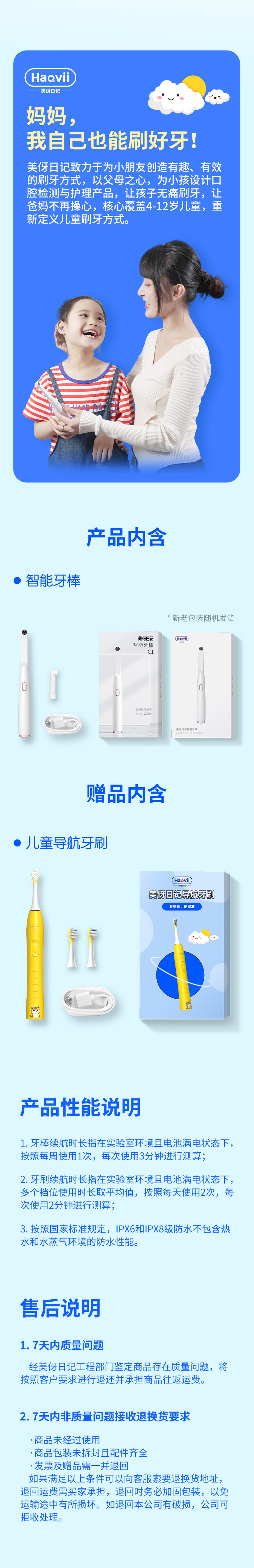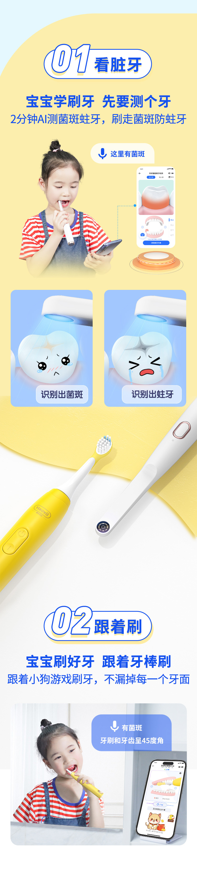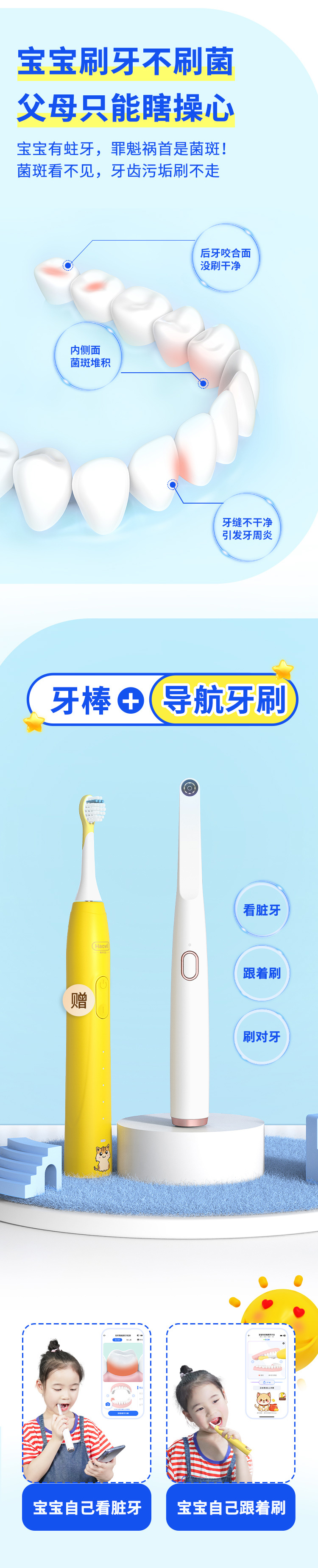 【全自动调节刷牙力度 】美伢日记口腔护理套装 智能牙刷 精准刷牙 发现刷牙盲区 有效预防蛀牙 保护宝宝牙齿