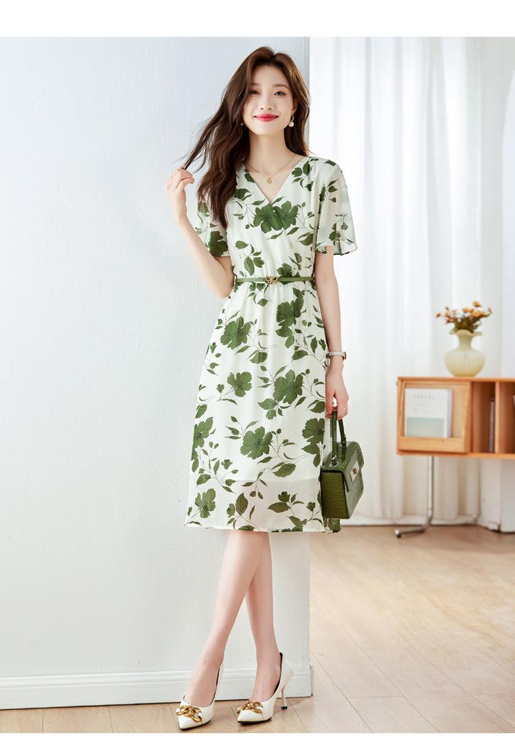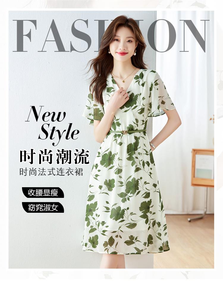 雪纺碎花高级感连衣裙女款2024年夏季新款气质中长裙显瘦遮肉裙子