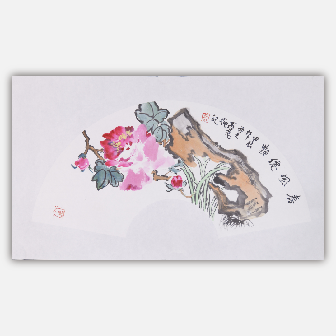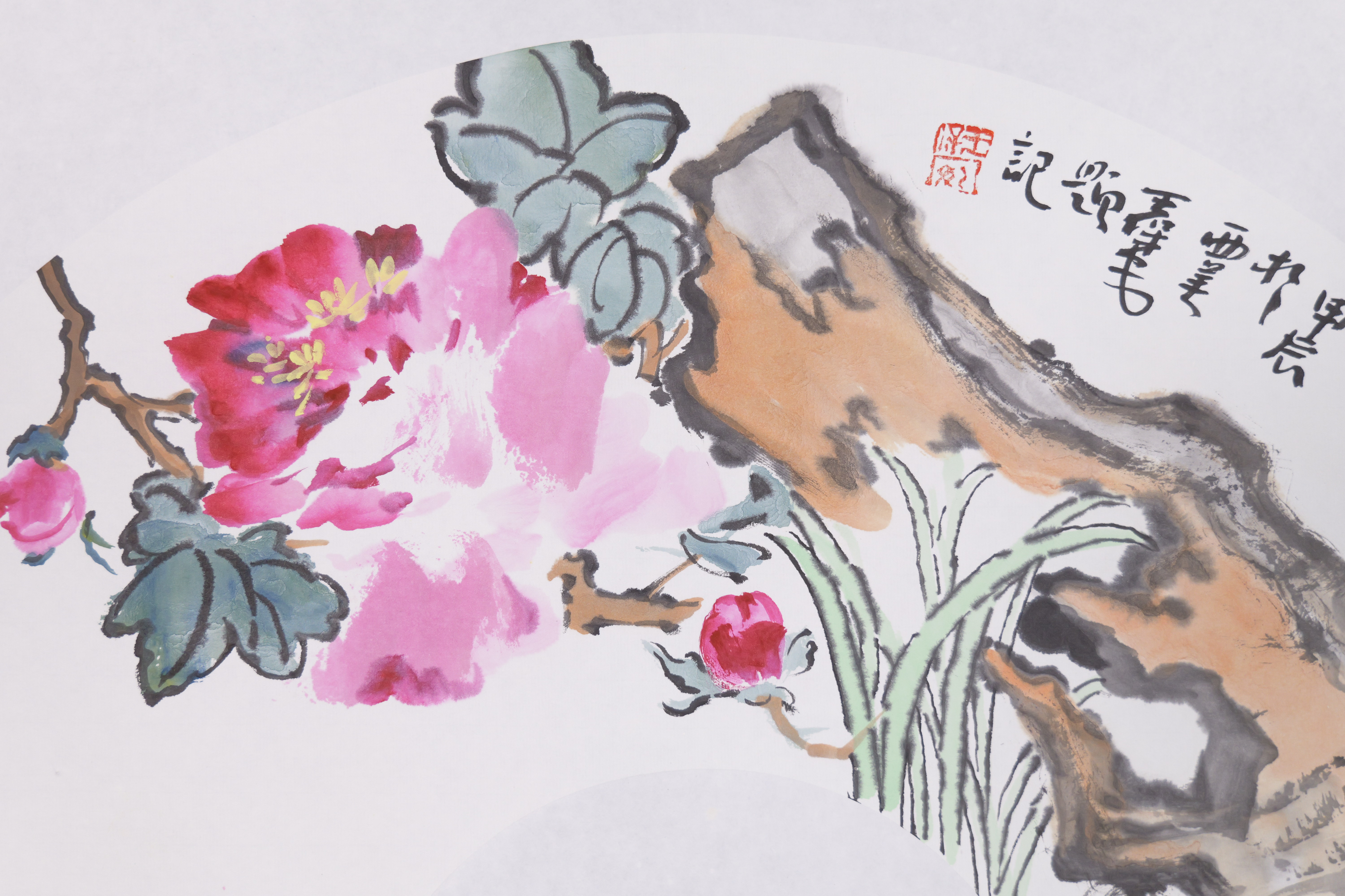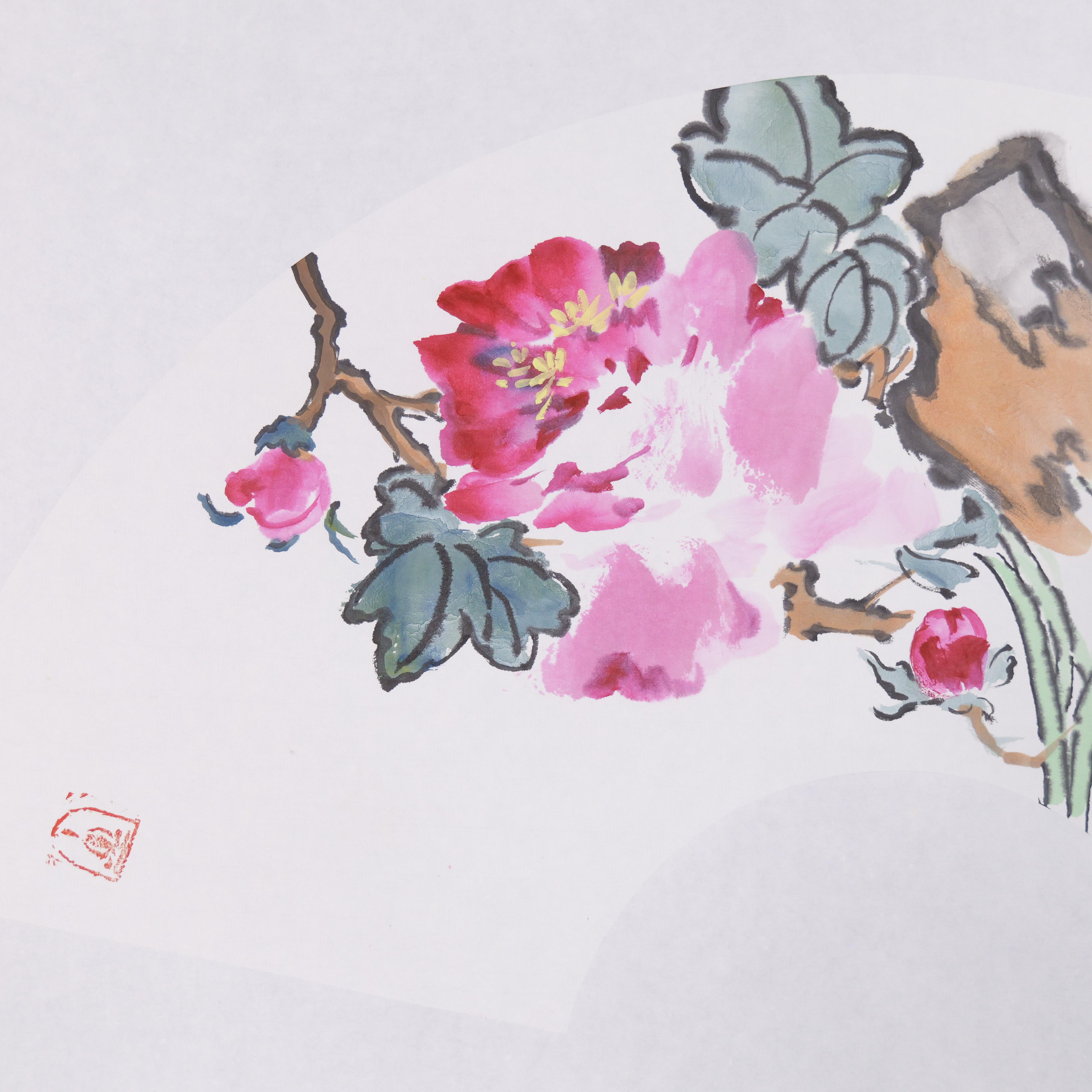 王保安《春风》国画原作32CM*63CM 手绘宣纸扇面花鸟作品