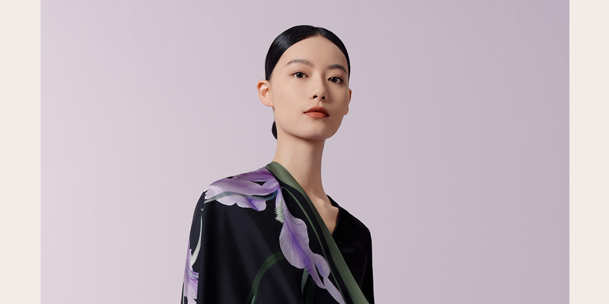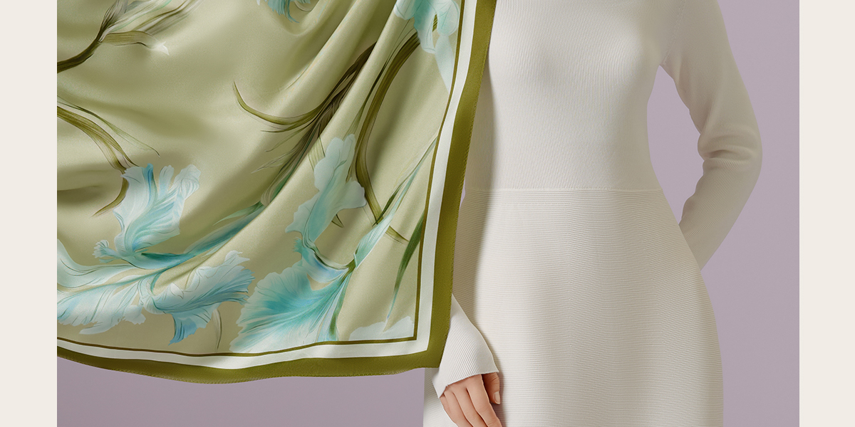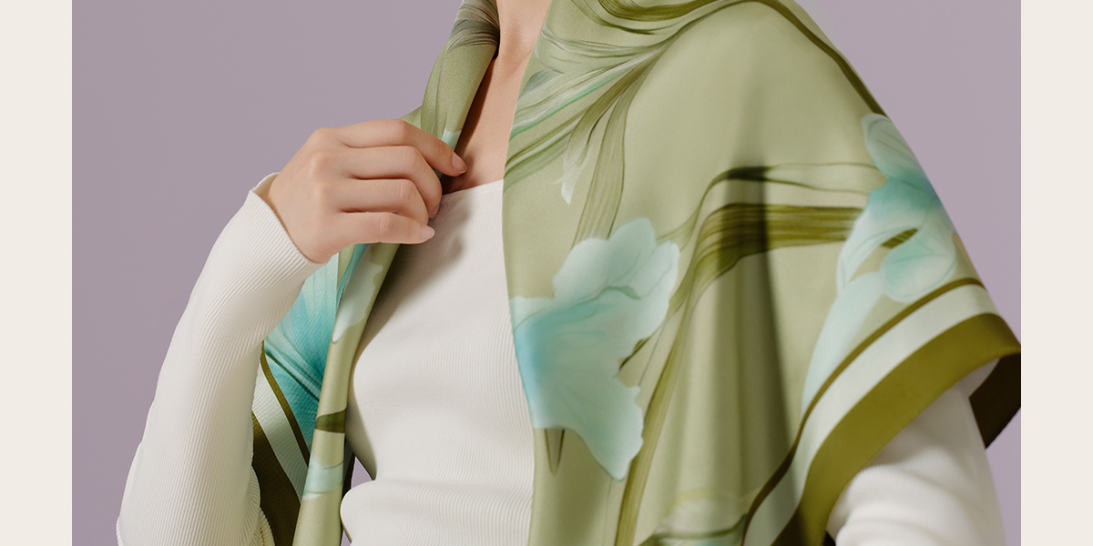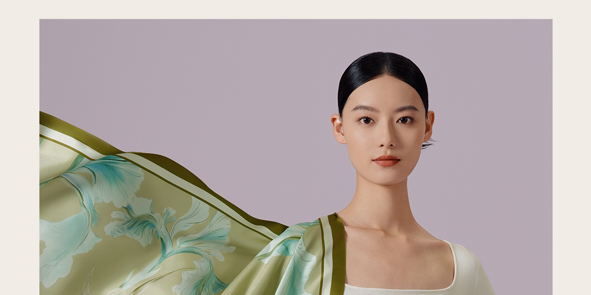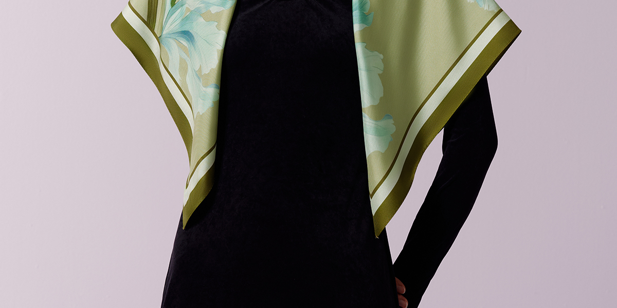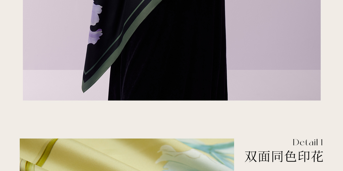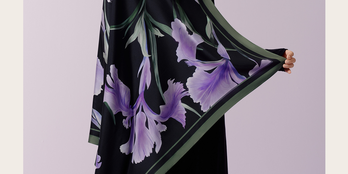 万事利“鸢尾赋”88厘米双面印花大方巾