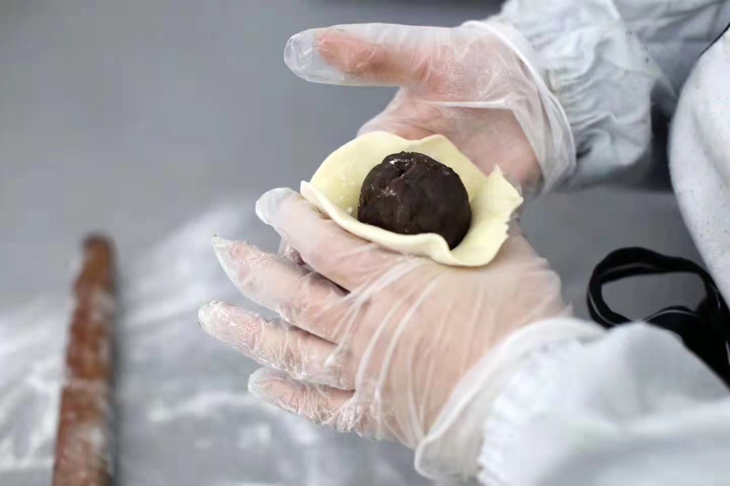 从红豆馅开始,为确保食品的口感,就有专人炒制。对火候的要求也很高,少一分豆子有夹生感,多一分又感受不到豆子的颗粒感。我们也是经过长时间的调试才找到了最佳的味道。