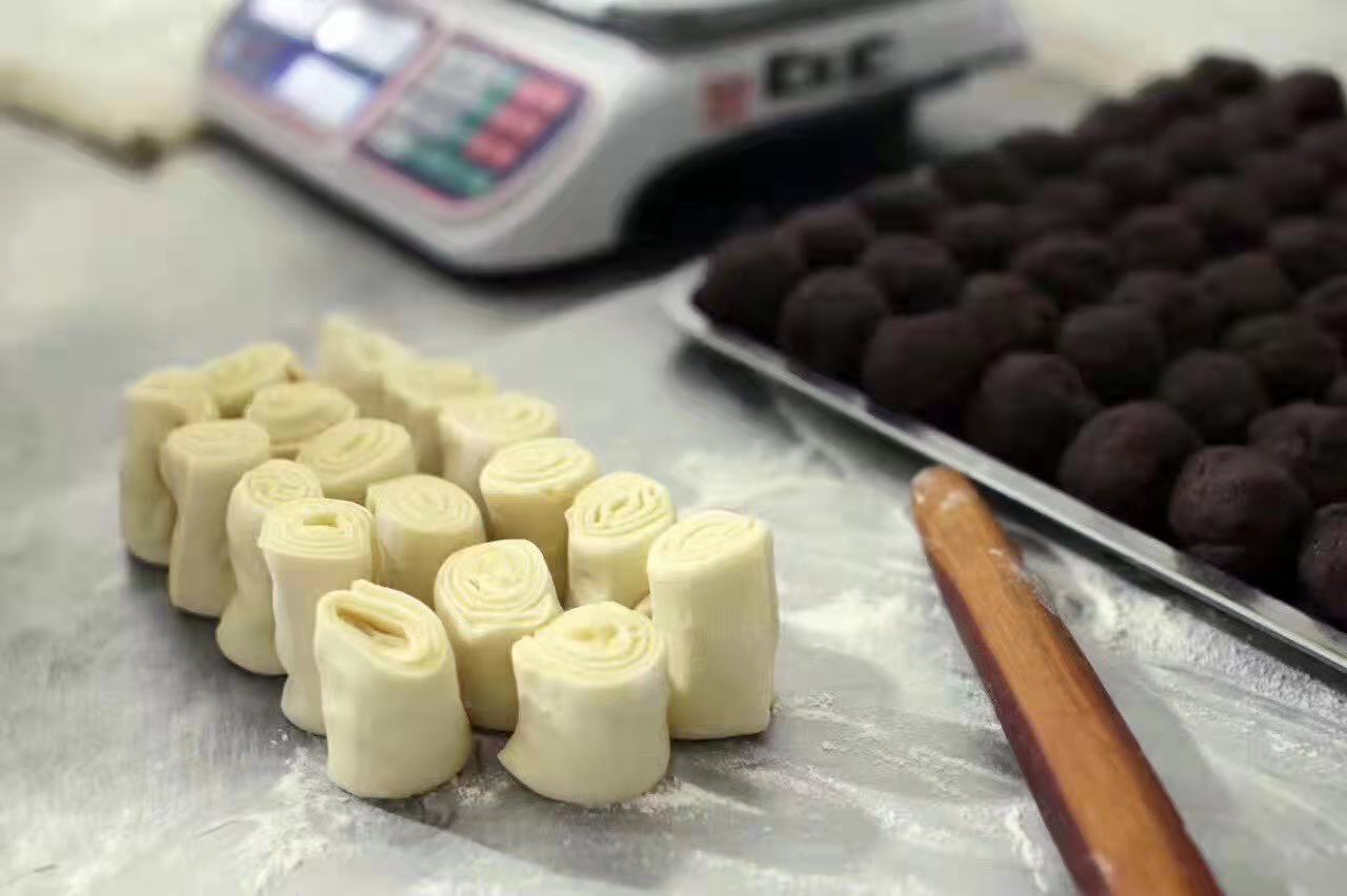 饼皮每一个都是手工制作出来的,只为了油酥和油皮完美融合成酥松的饼皮。