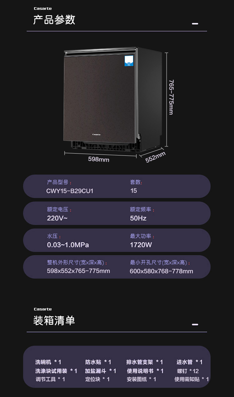 卡萨帝/Casarte洗碗机新品29C变频嵌入式家用15套高温除菌消毒速烘干CWY15-B29CU1洗碗机【变频升级】