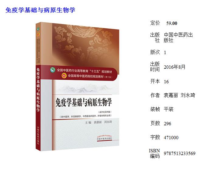 免疫学基础与病原生物学 新世纪第4四版 全国高等中医药院校教材 第十10版 十三五 袁嘉丽 刘永琦主编 供中医学针灸推拿学等专业用