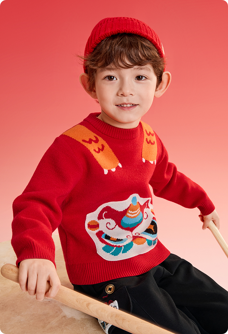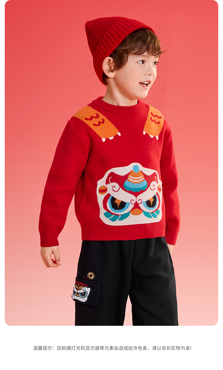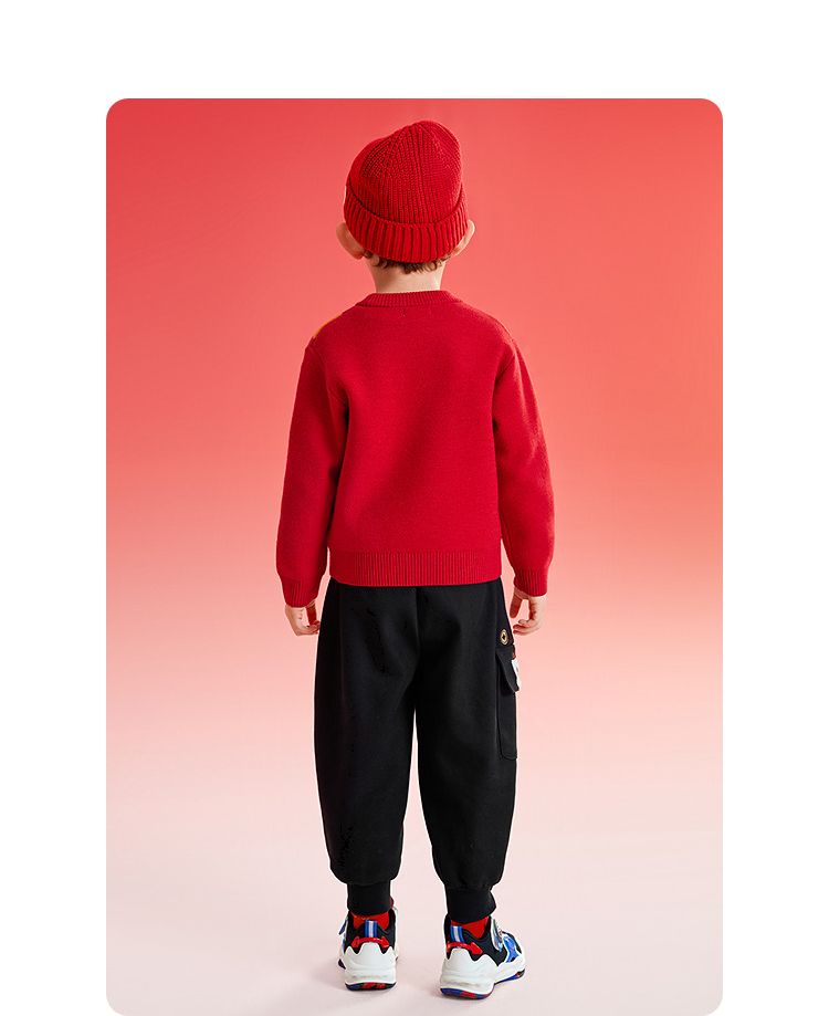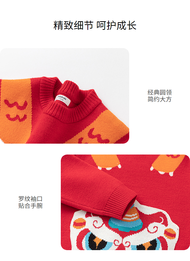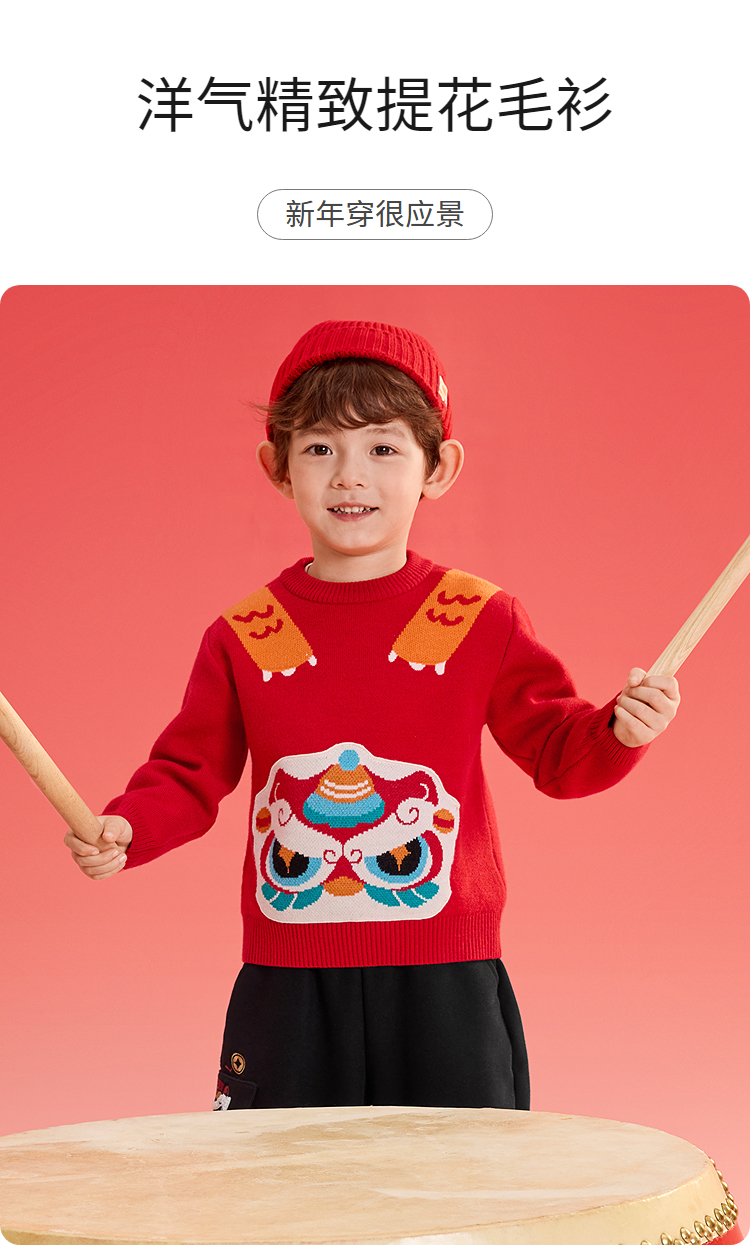巴拉巴拉童装儿童毛衫男童春装新年提花针织衫精致绣花套头拜年服