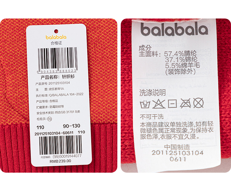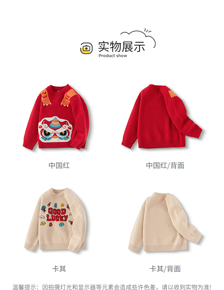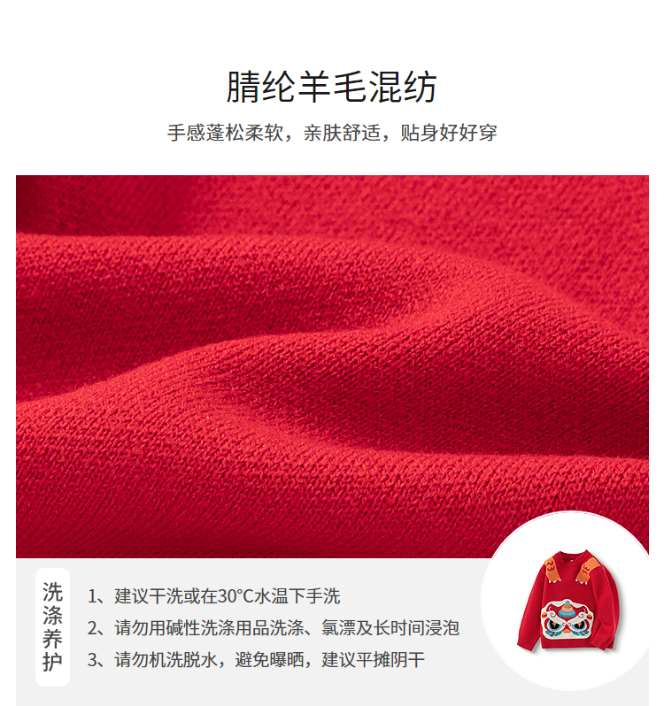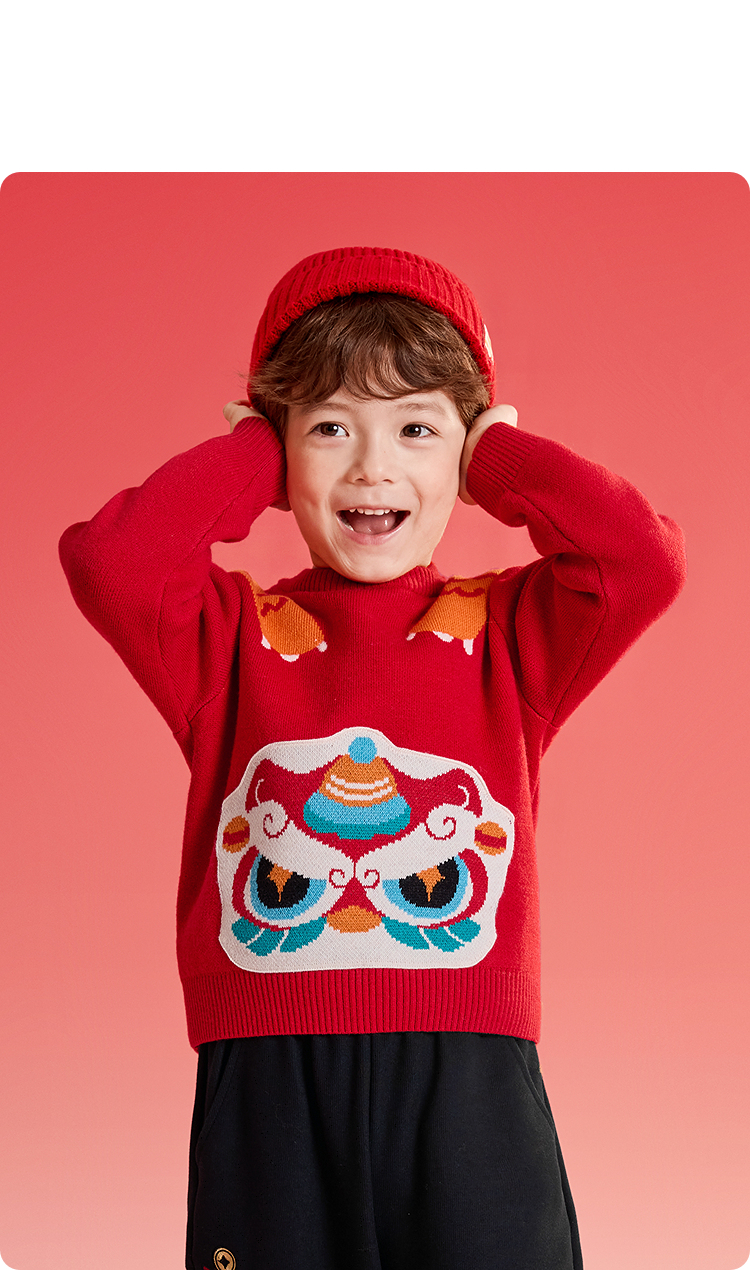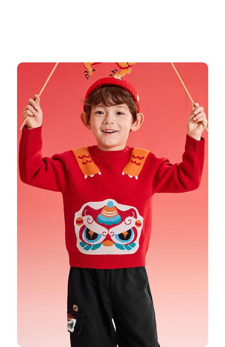 巴拉巴拉童装儿童毛衫男童春装新年提花针织衫精致绣花套头拜年服