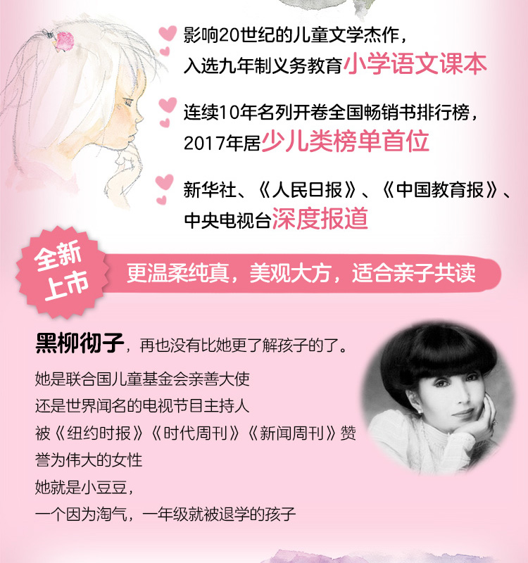 | 美国、中国、日本、英国等40国中小学生与教师“喜欢图书”!要了解孩子,每一位父亲、母亲必须熟读!要懂得孩子,每一位老师、校长必须熟读!要珍惜自己,每一个孩子必须熟读! 再也没有比她更了解孩子的了!——联合国儿童基金会主席James P.Grant 美国《纽约时报》《时代》周刊《新闻周刊》热情推荐。 日、美、英等国中小学生与教师必读书。 为了孩子.你一定要读的一本书,每一位家长和老师! 20世纪有影响的作品之一33种文字全球发行,日本有史以来图书销量排行,入选九年制义务教育小学语文课本,新华社、《人民日报》、《中国教育报》、《中国青年报》、《文汇报》、中央电视台等数百家媒体深度报道。 《中华读书报》、新浪网、《新京报》当当网、亚马逊网年度有价值图书。 她是亚洲第一位联合国儿童基金会亲善大使,足迹遍及地球的每一个角落; ...... |