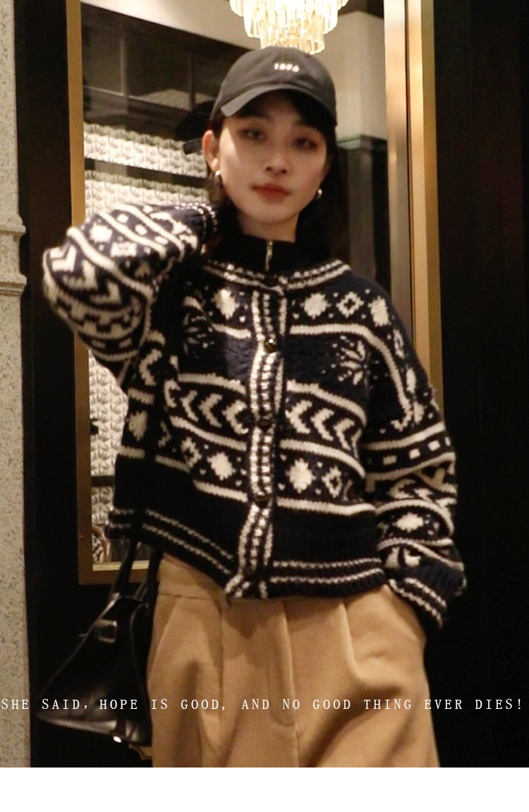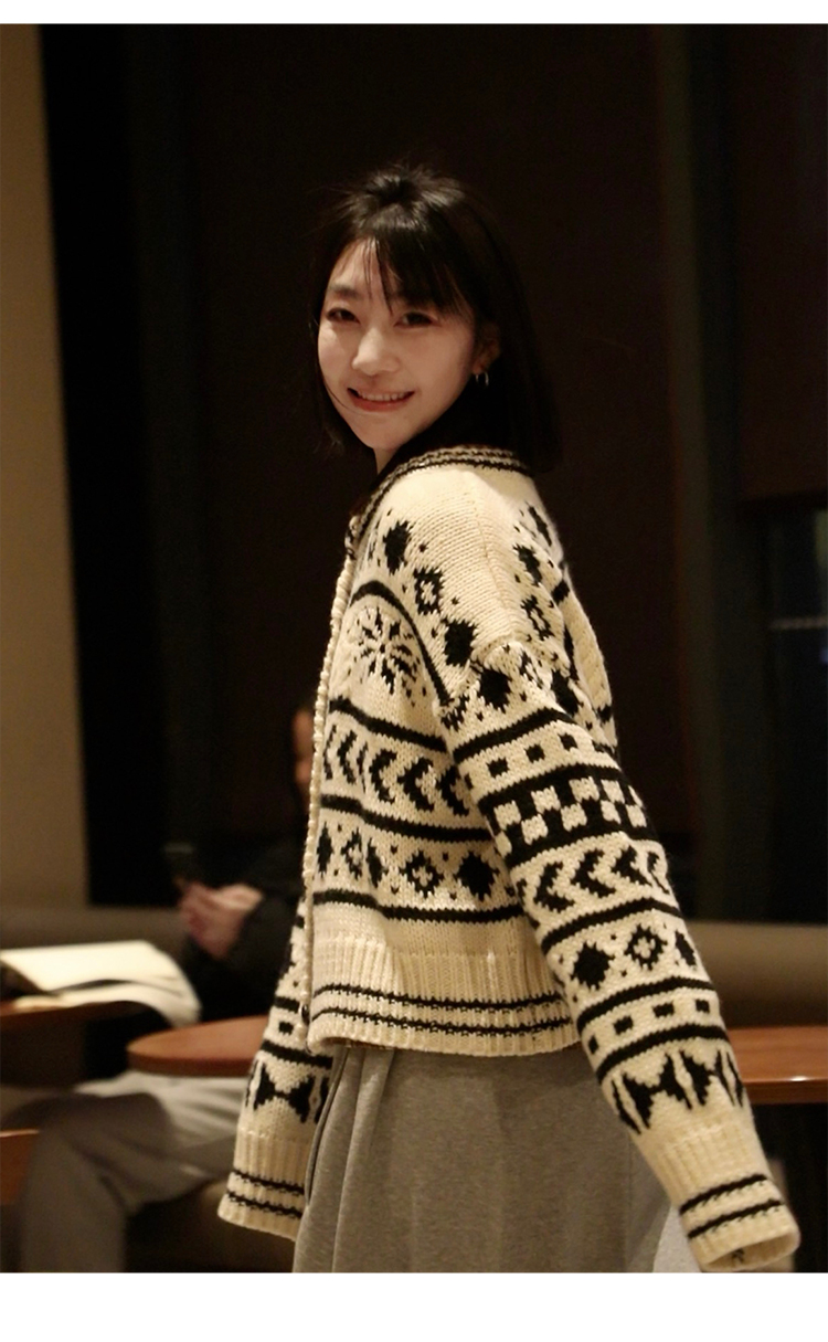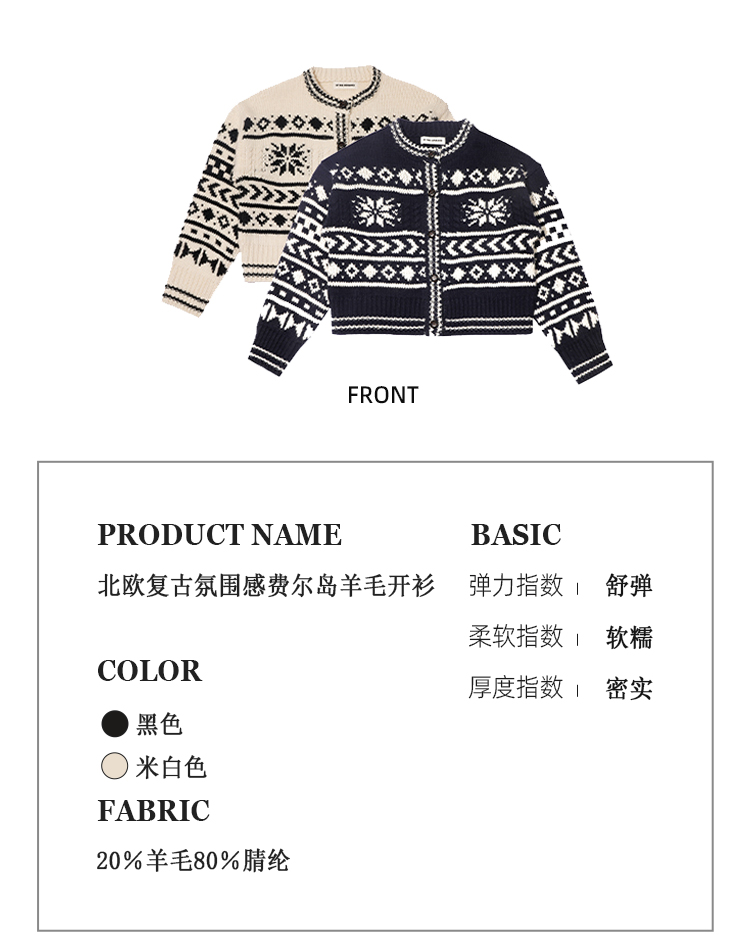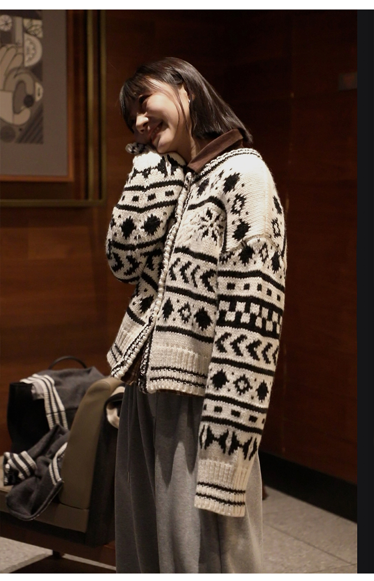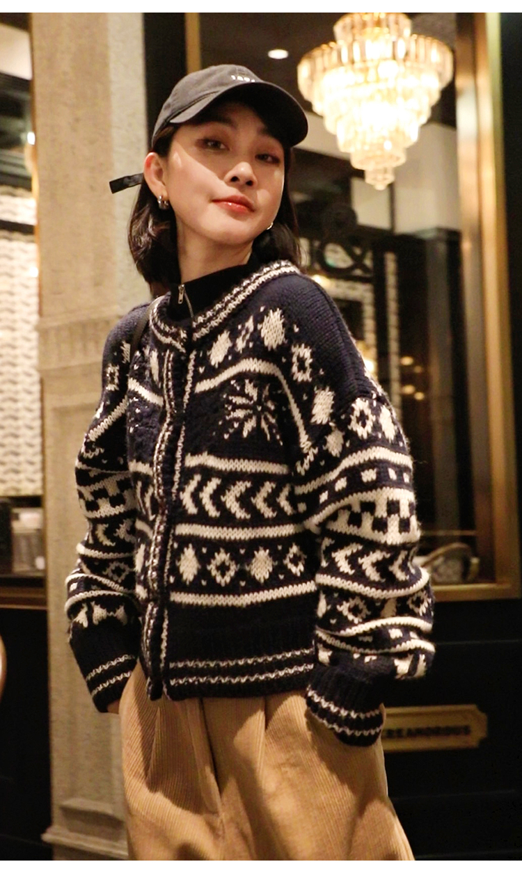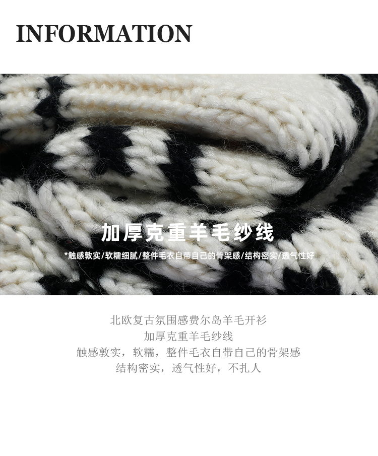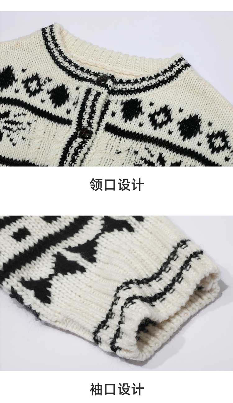 【北欧】定制加厚大克重秋冬复古羊毛粗棒针织钩花费尔岛毛衣外套