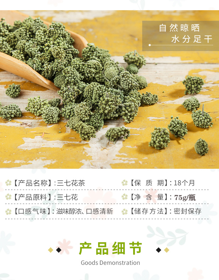 【产品规格】 三七花茶75g*1罐;三七花茶75g*2罐