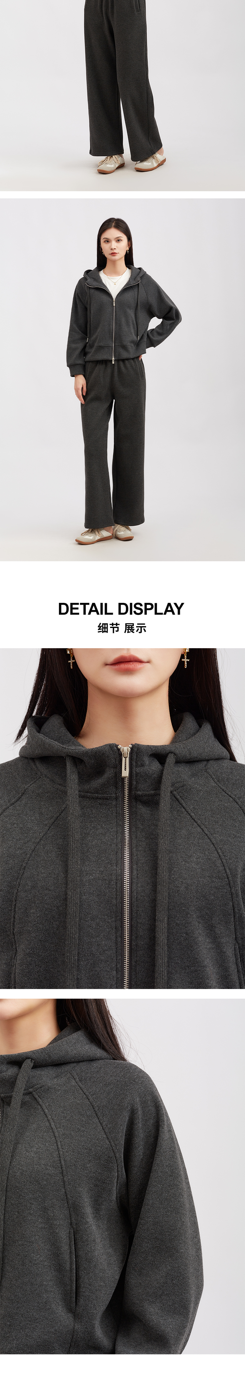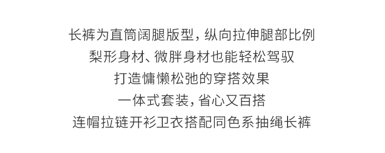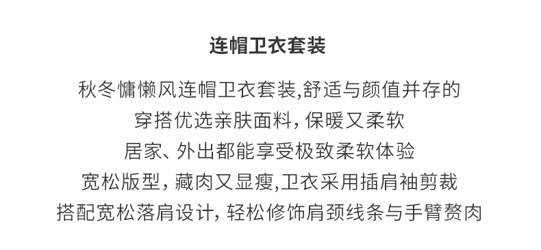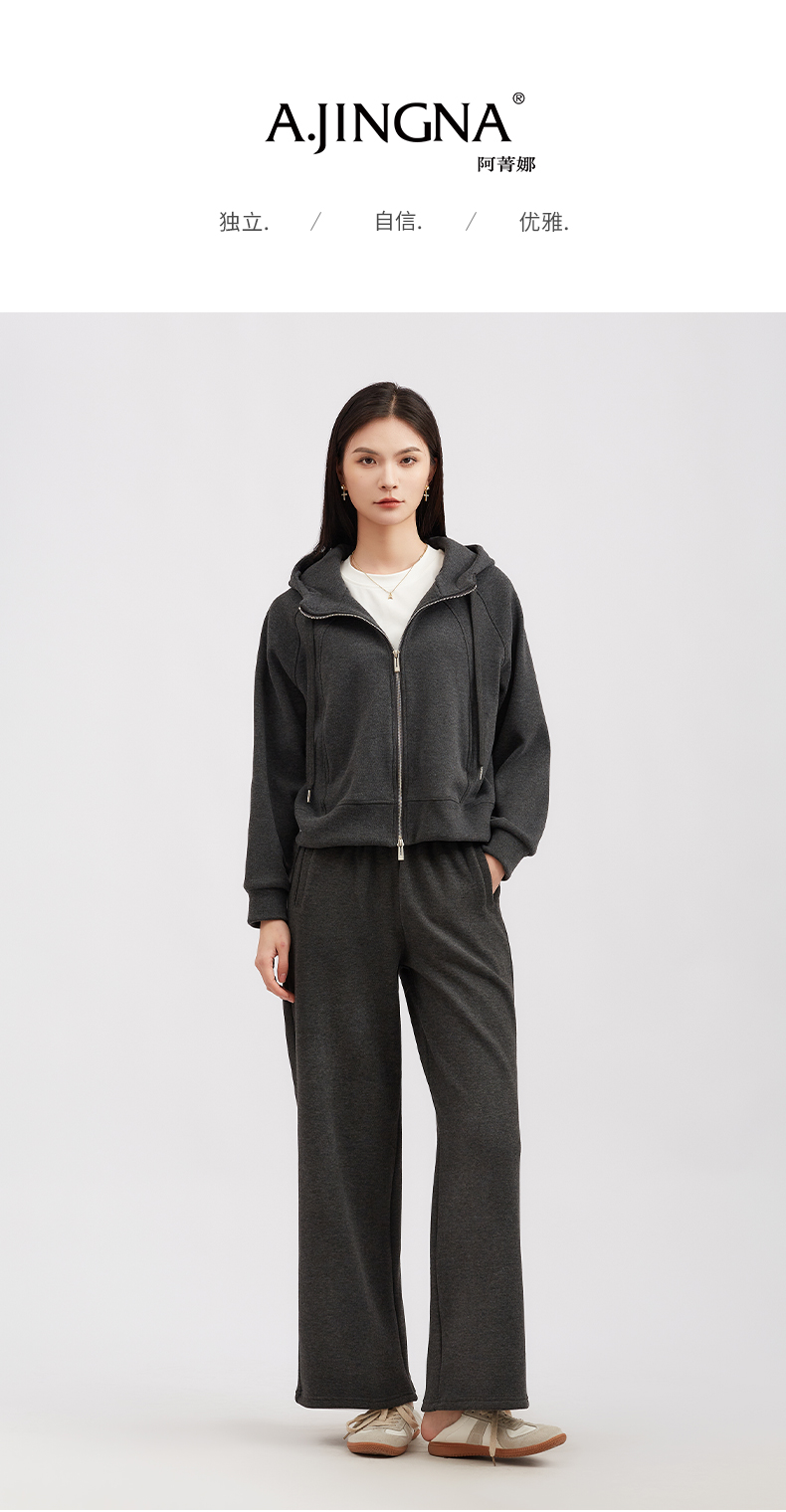 【松弛感套装】阿菁娜冬季新款显瘦松弛感套装连帽卫衣+阔腿裤亲肤面料可拆分多穿法F30D230009