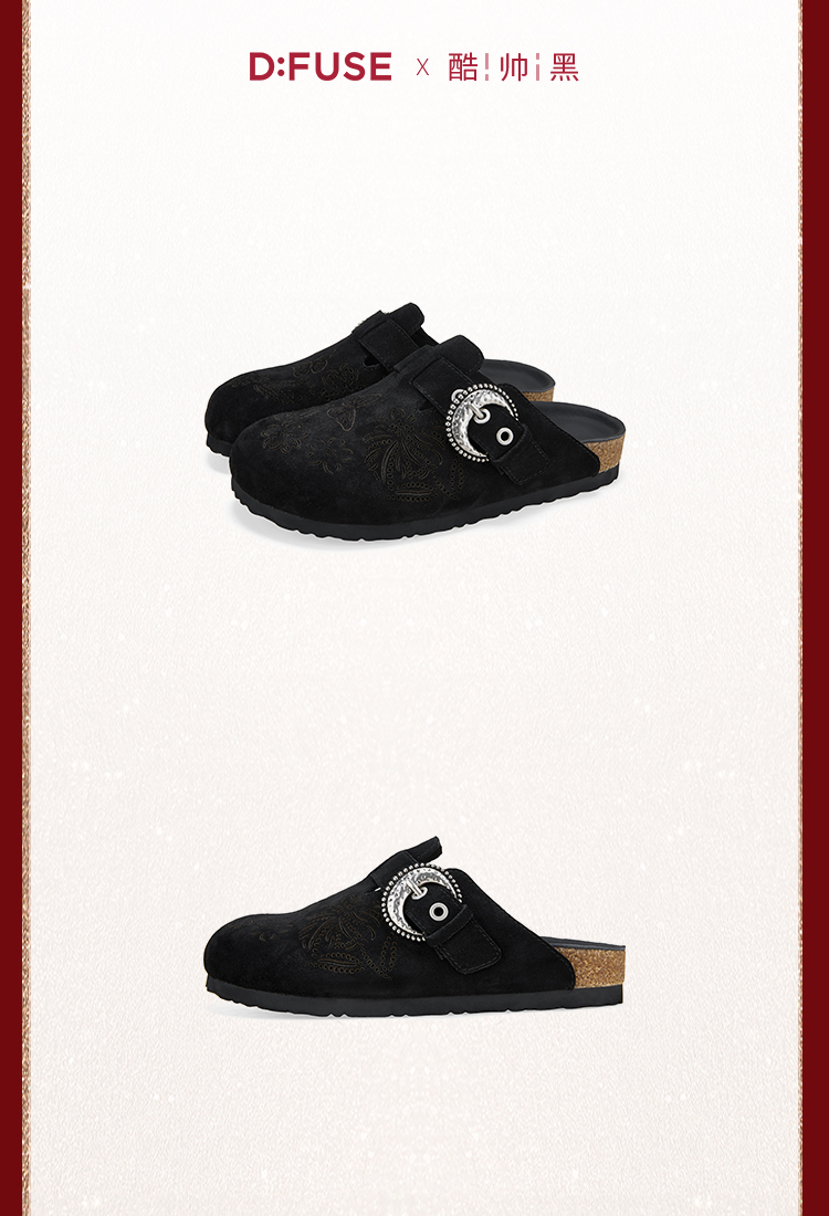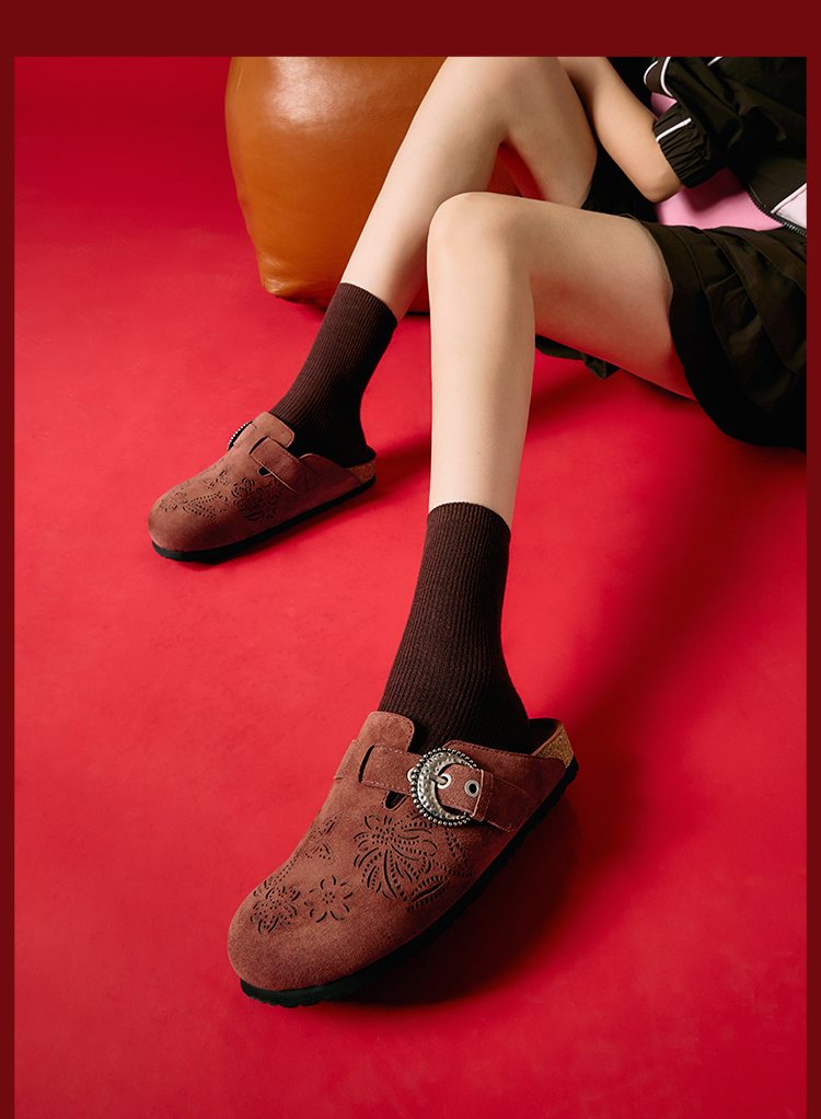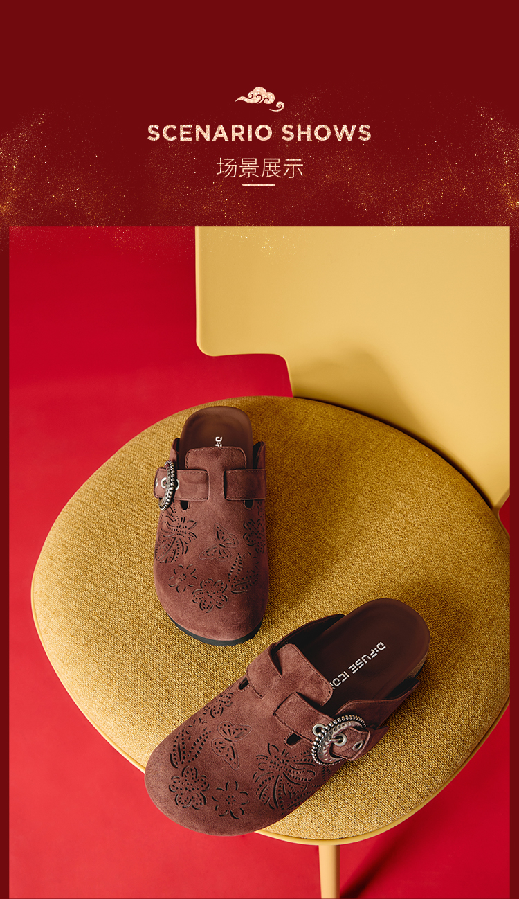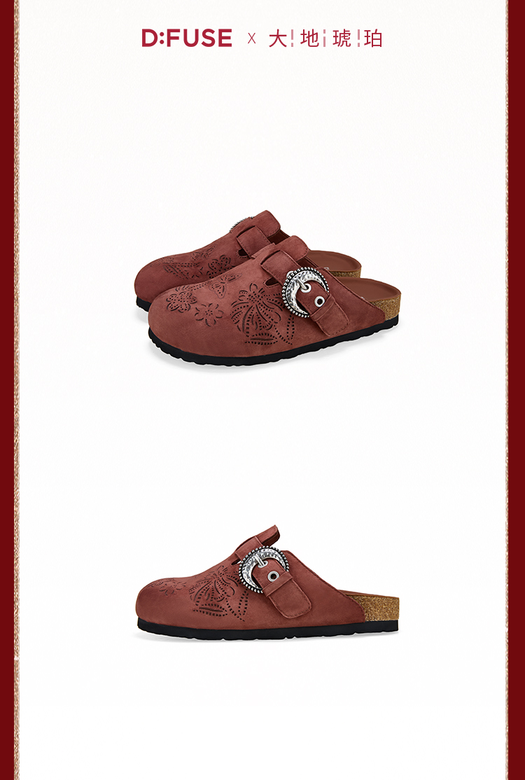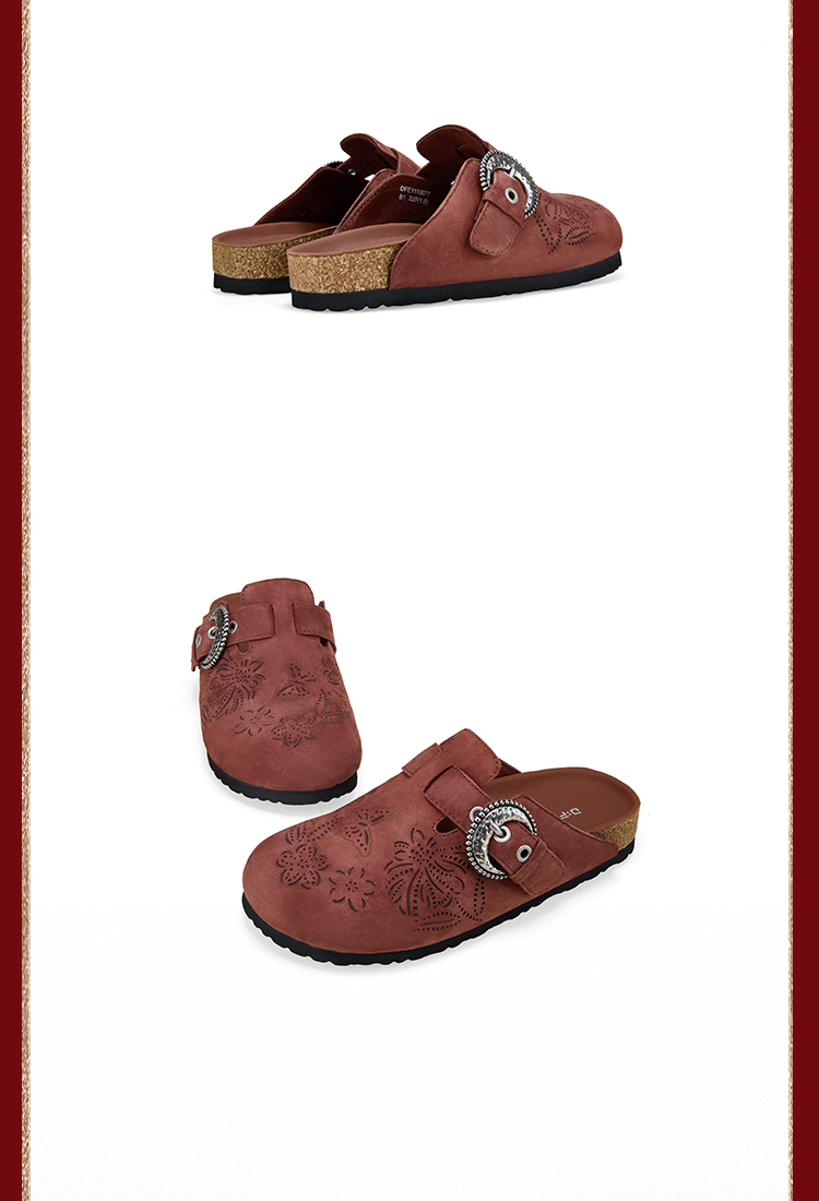 Dfuse迪芙斯2026春季新款镂空雕花半包头勃肯鞋拖鞋DFE1110077