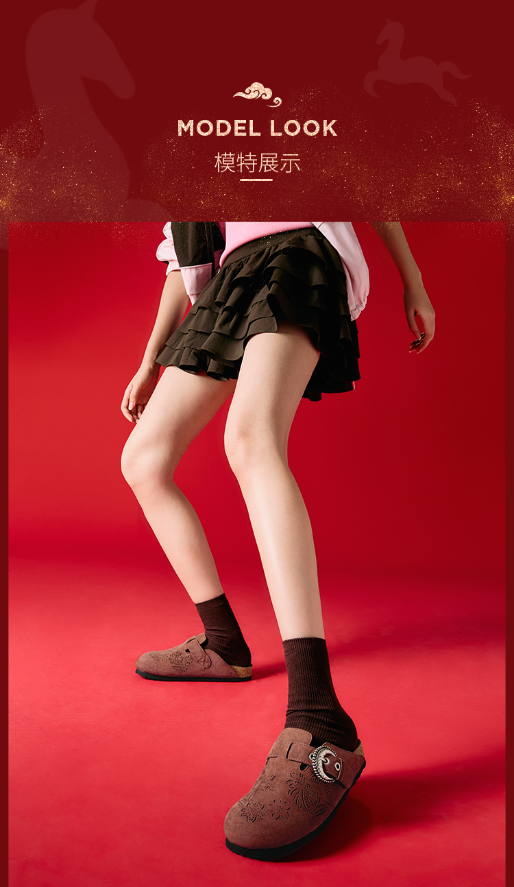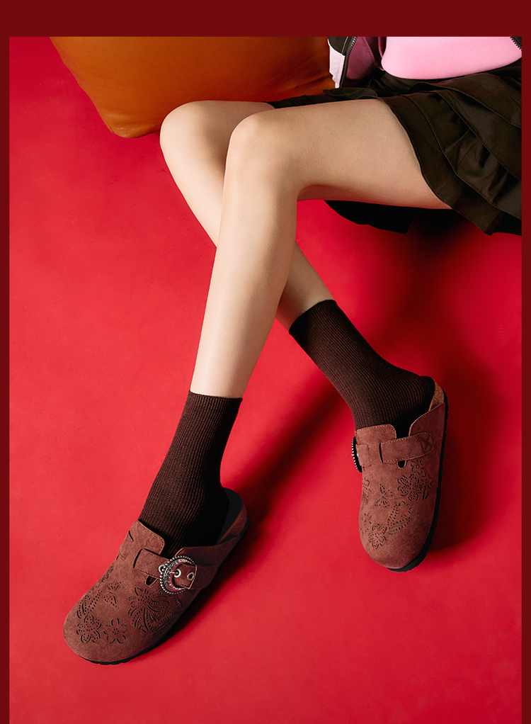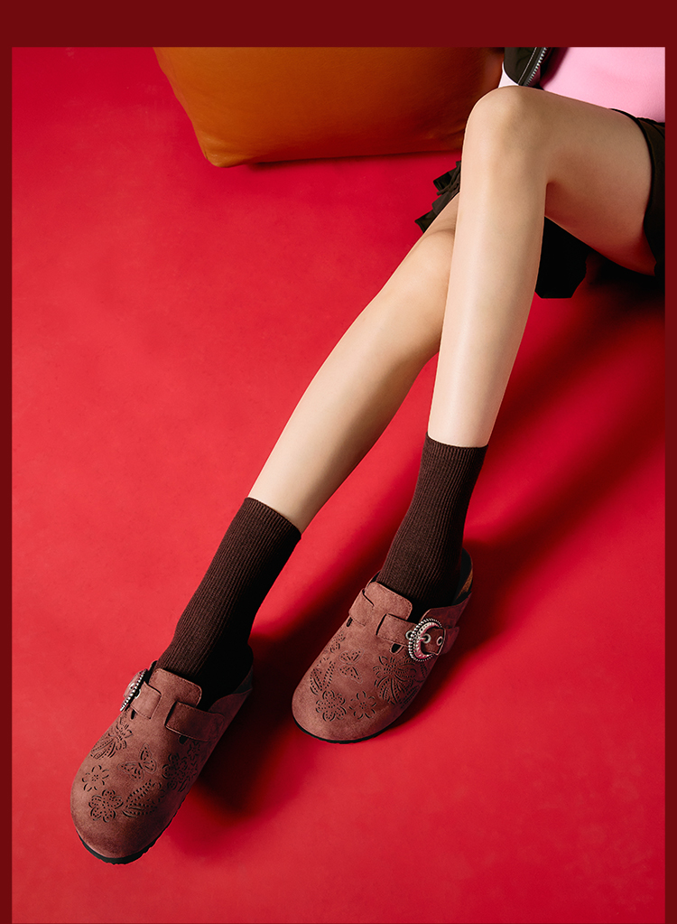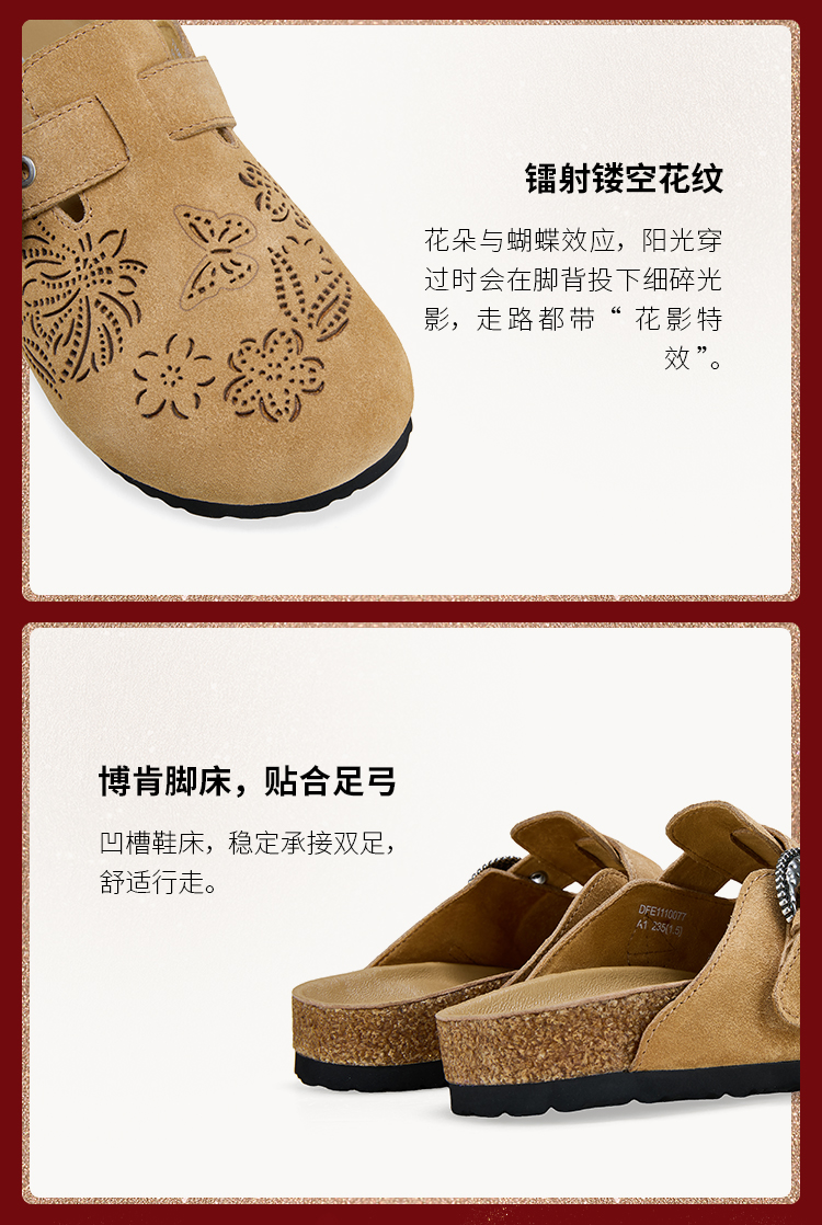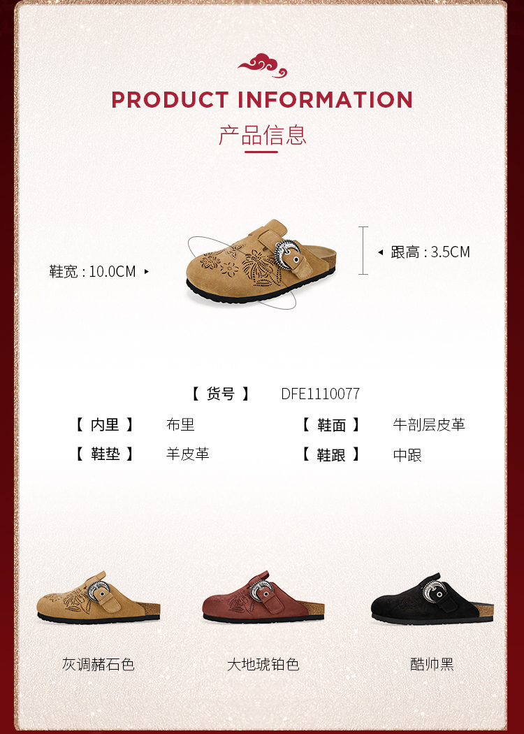 Dfuse迪芙斯2026春季新款镂空雕花半包头勃肯鞋拖鞋DFE1110077