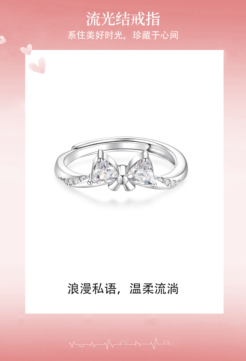 卡蒂罗/KADER 流光结女戒 在逃公主轻奢镶嵌大颗闪锆时候开口可调节单戒 钟爱久久恋爱频率氛围感配饰