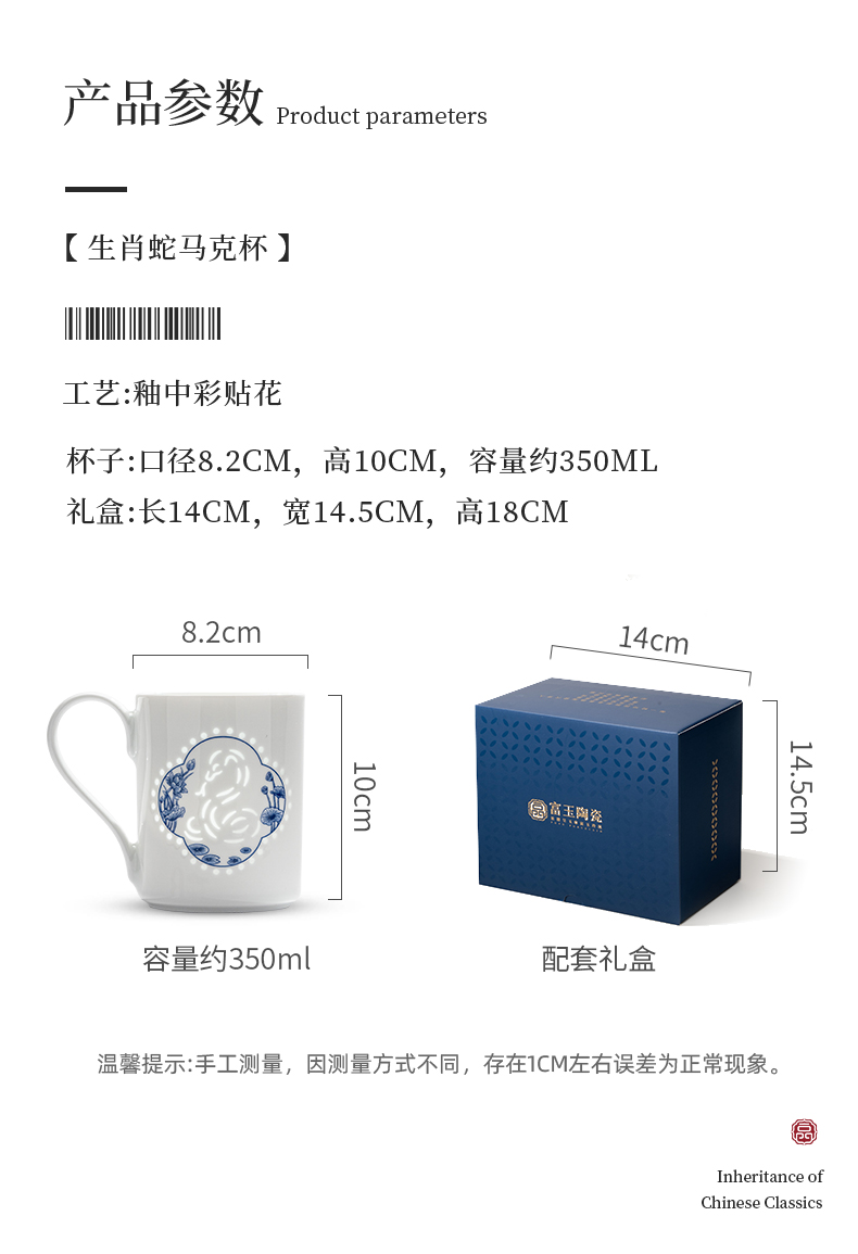富玉陶瓷玲珑马克杯大容量高颜值生肖马克杯