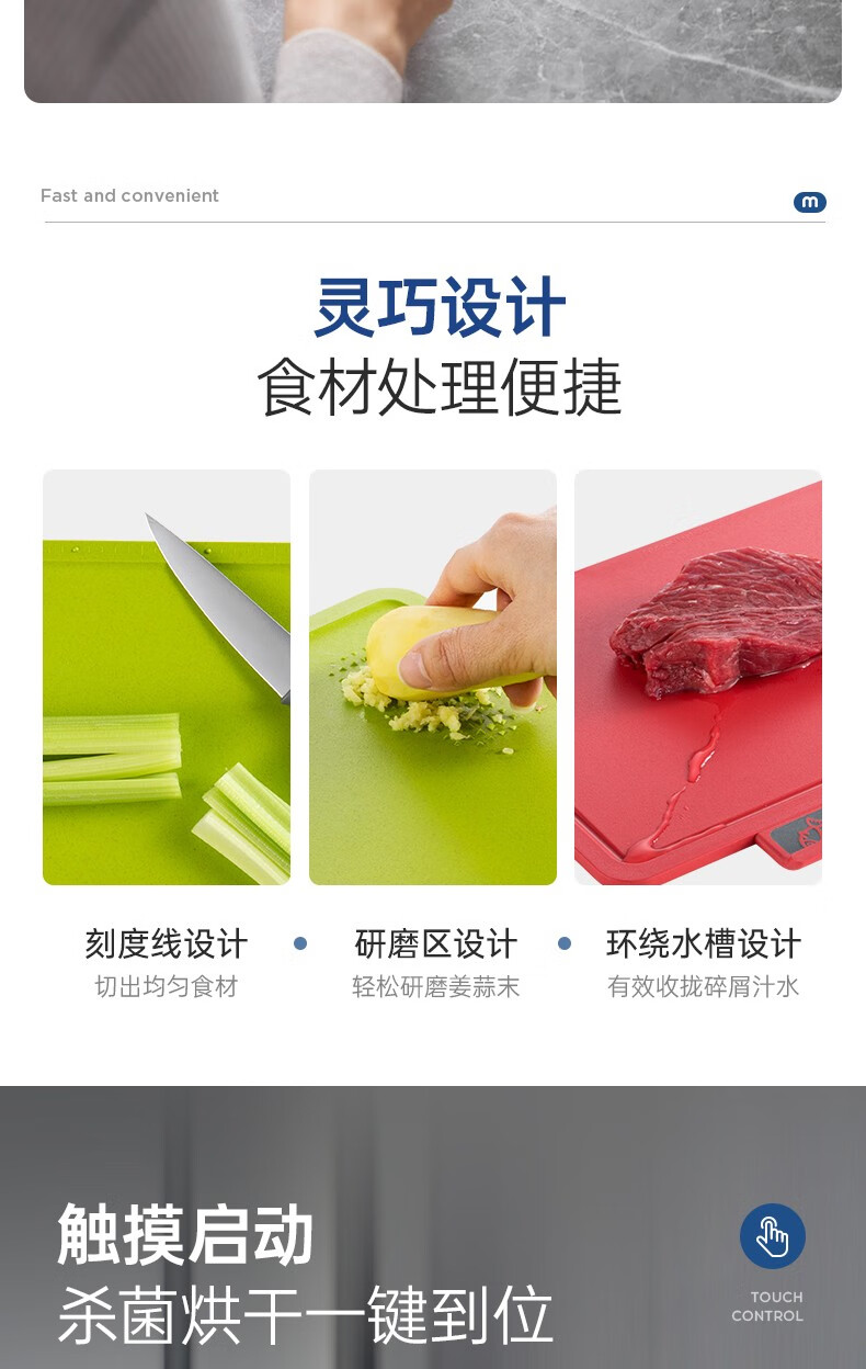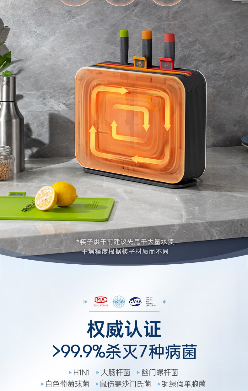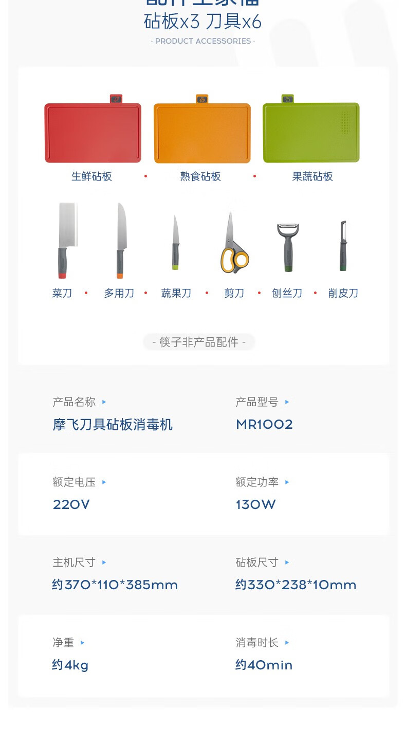 摩飞电器(Morphyrichards) 消毒烘干刀具砧板分类菜板刀架套装筷子消毒一体MR1002 分类刀具砧板MR1000