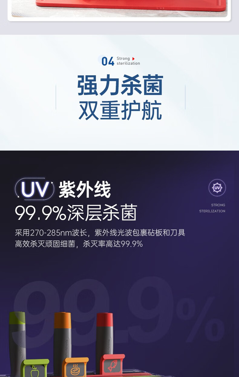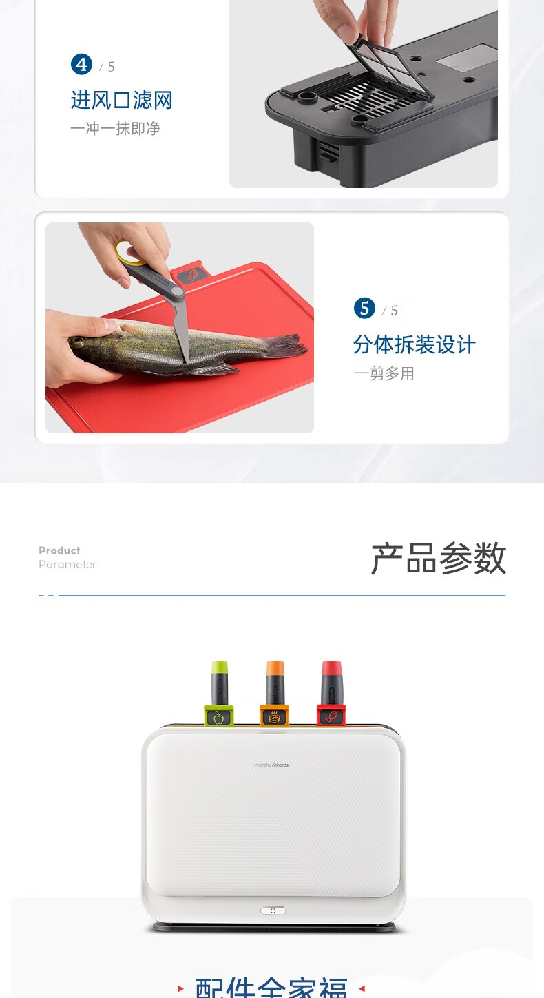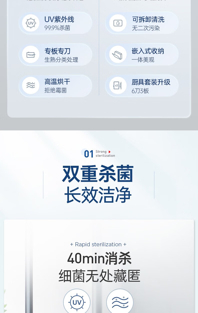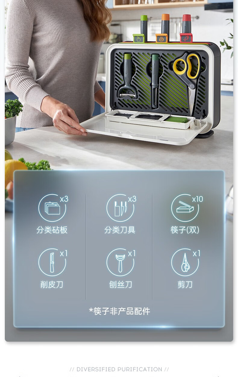 摩飞电器(Morphyrichards) 消毒烘干刀具砧板分类菜板刀架套装筷子消毒一体MR1002 分类刀具砧板MR1000