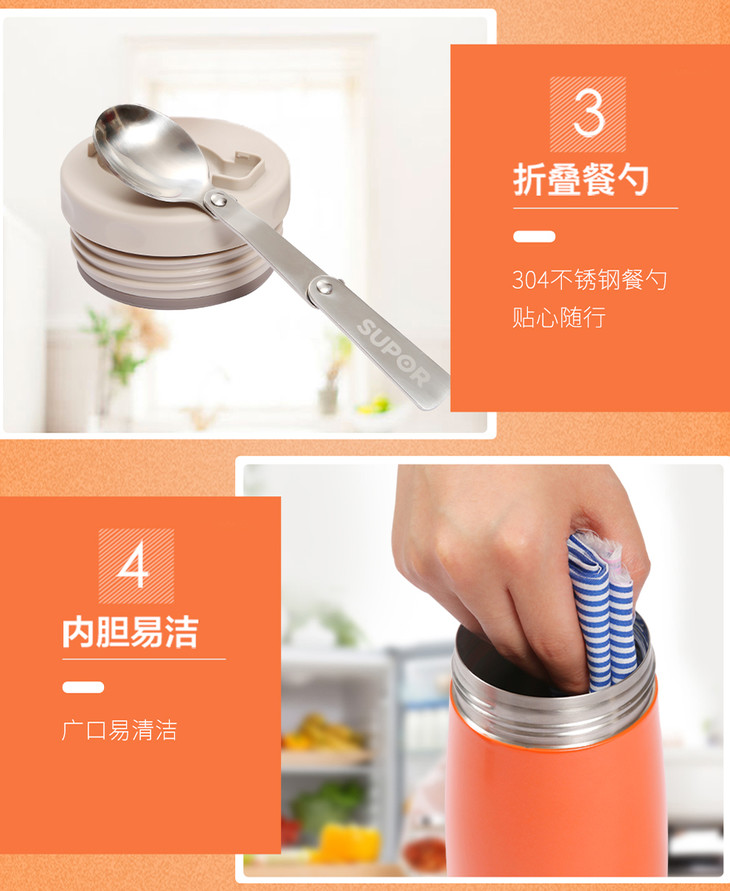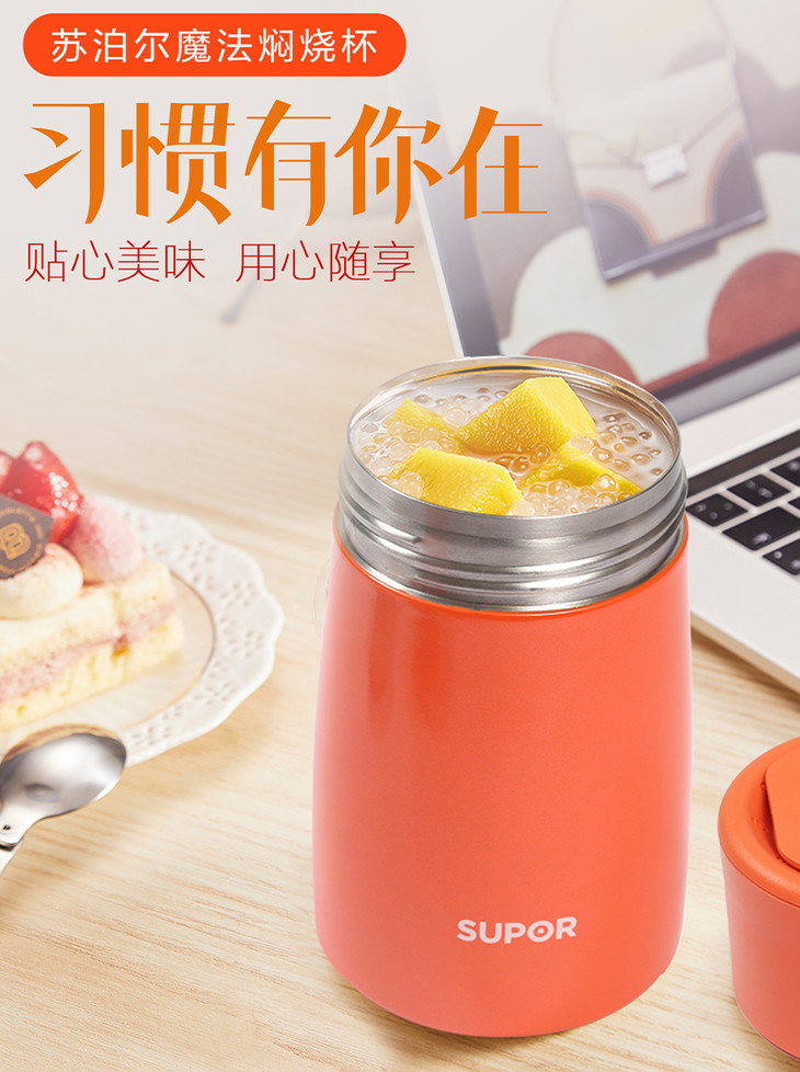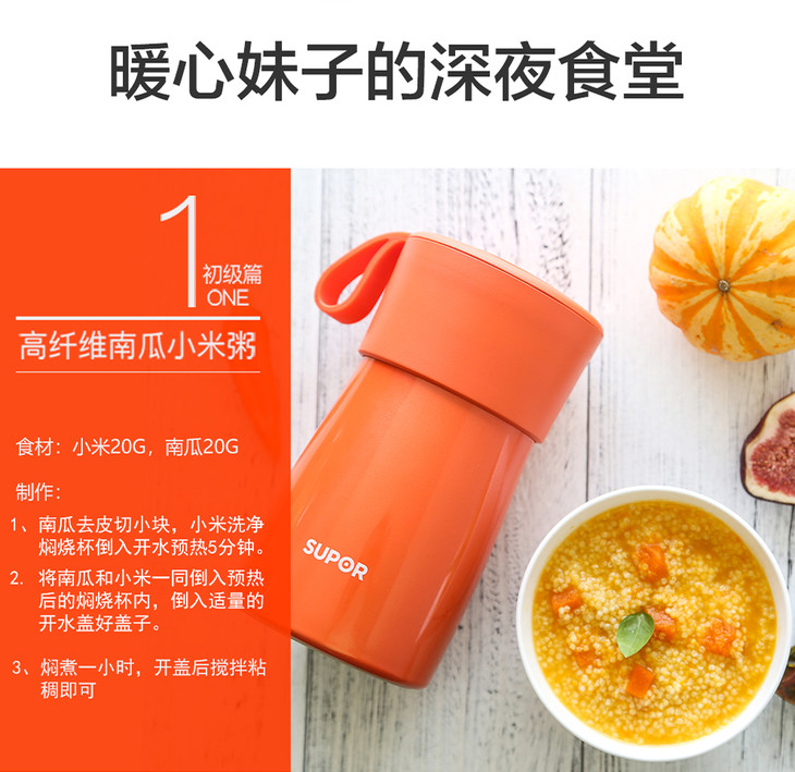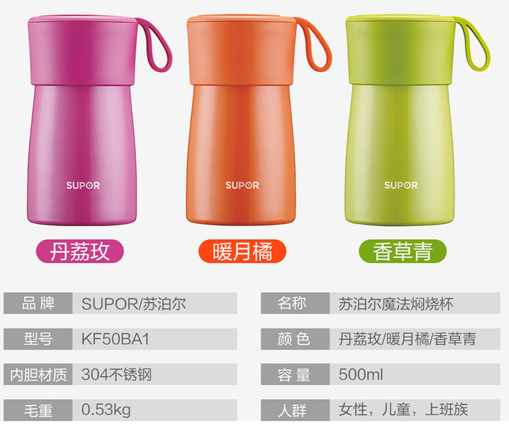 苏泊尔(508538)(SUPOR)304不锈钢魔法大容量焖烧杯500ml保温桶儿童饭盒通用真空保温杯KC50BA1暖月橘炊具厨具