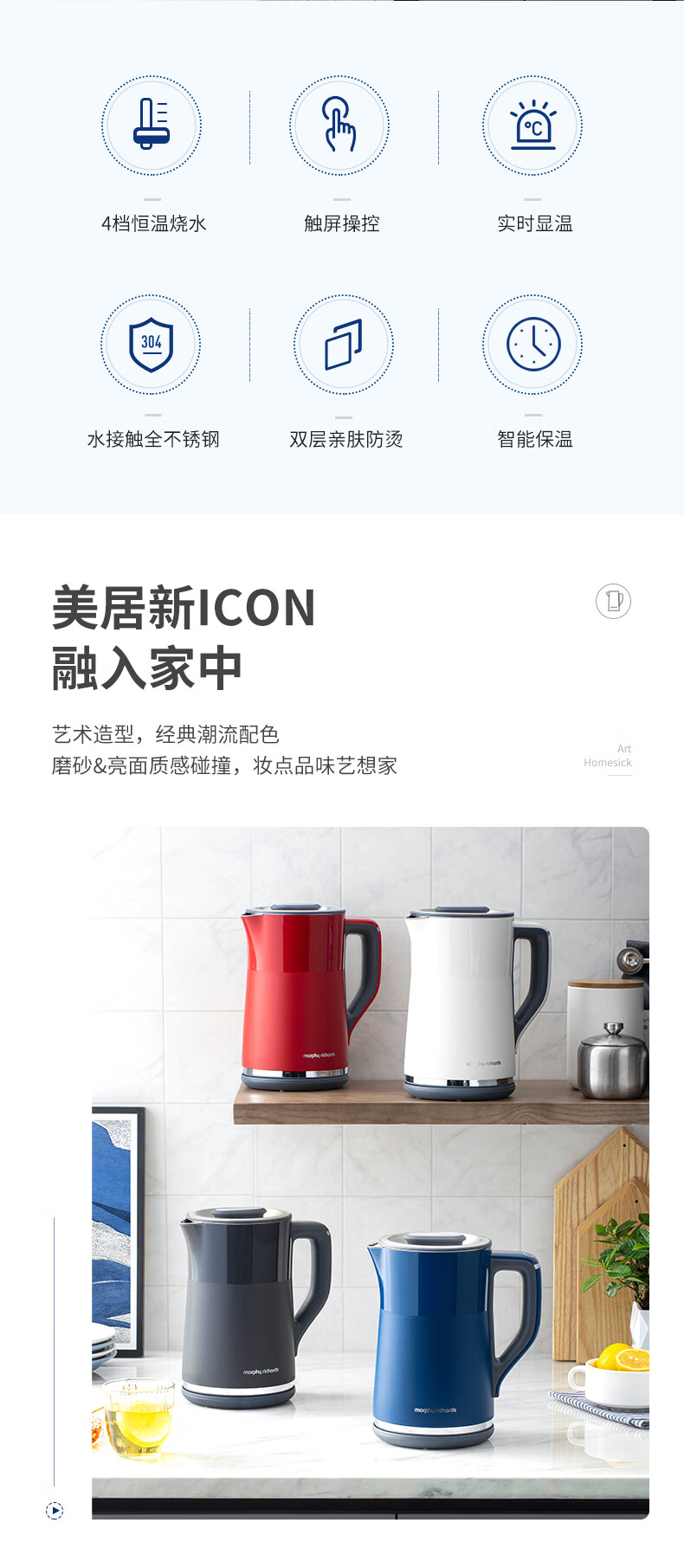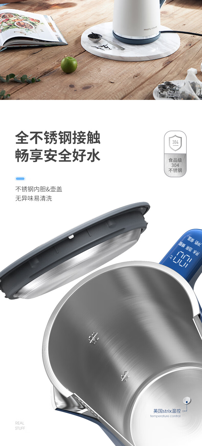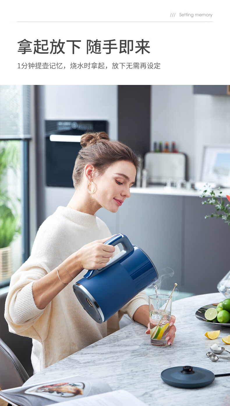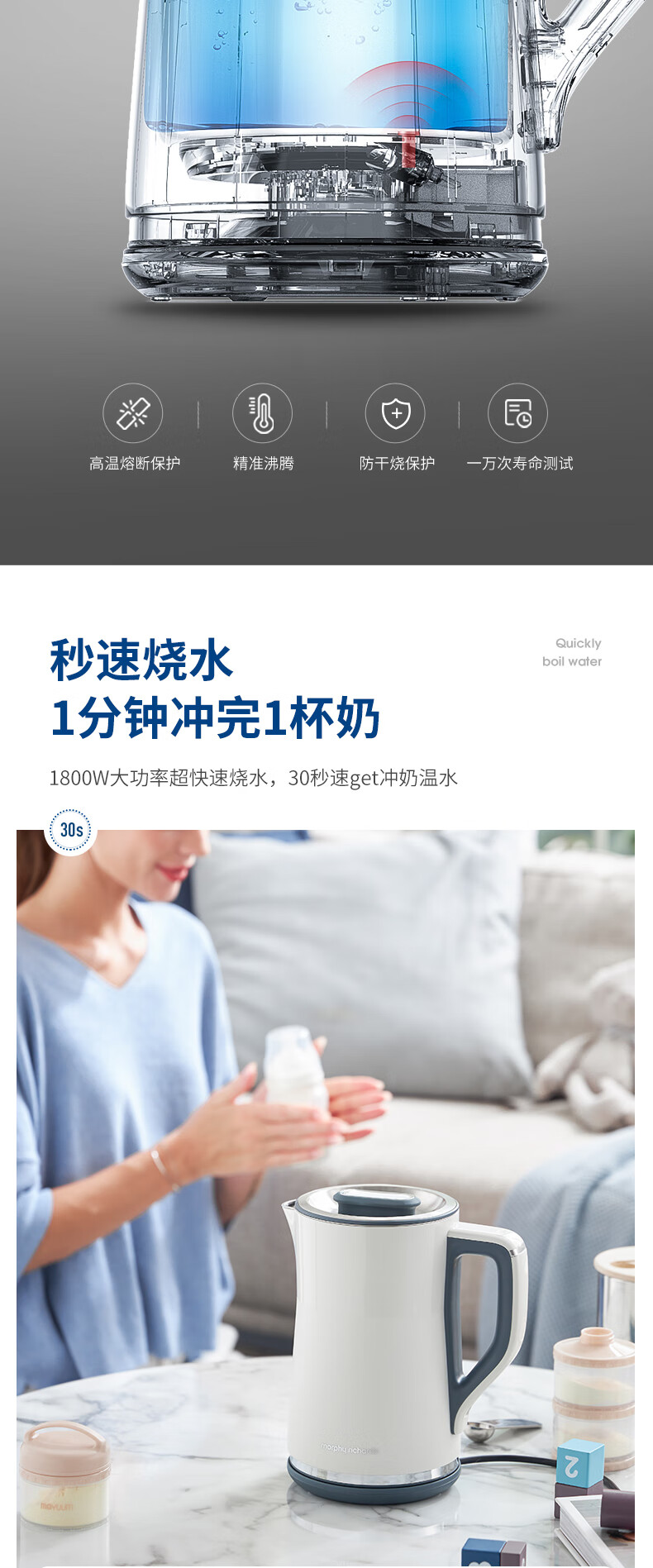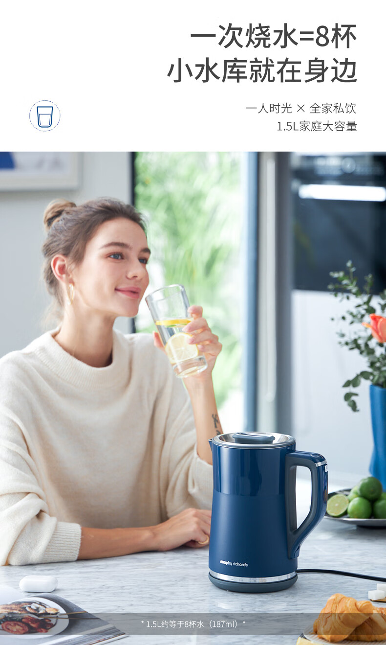 摩飞电器(Morphyrichards)电热水壶 烧水壶 热水壶 家用恒温水壶 1.5L全不锈钢304双层防烫实时显温开水壶 MR6070