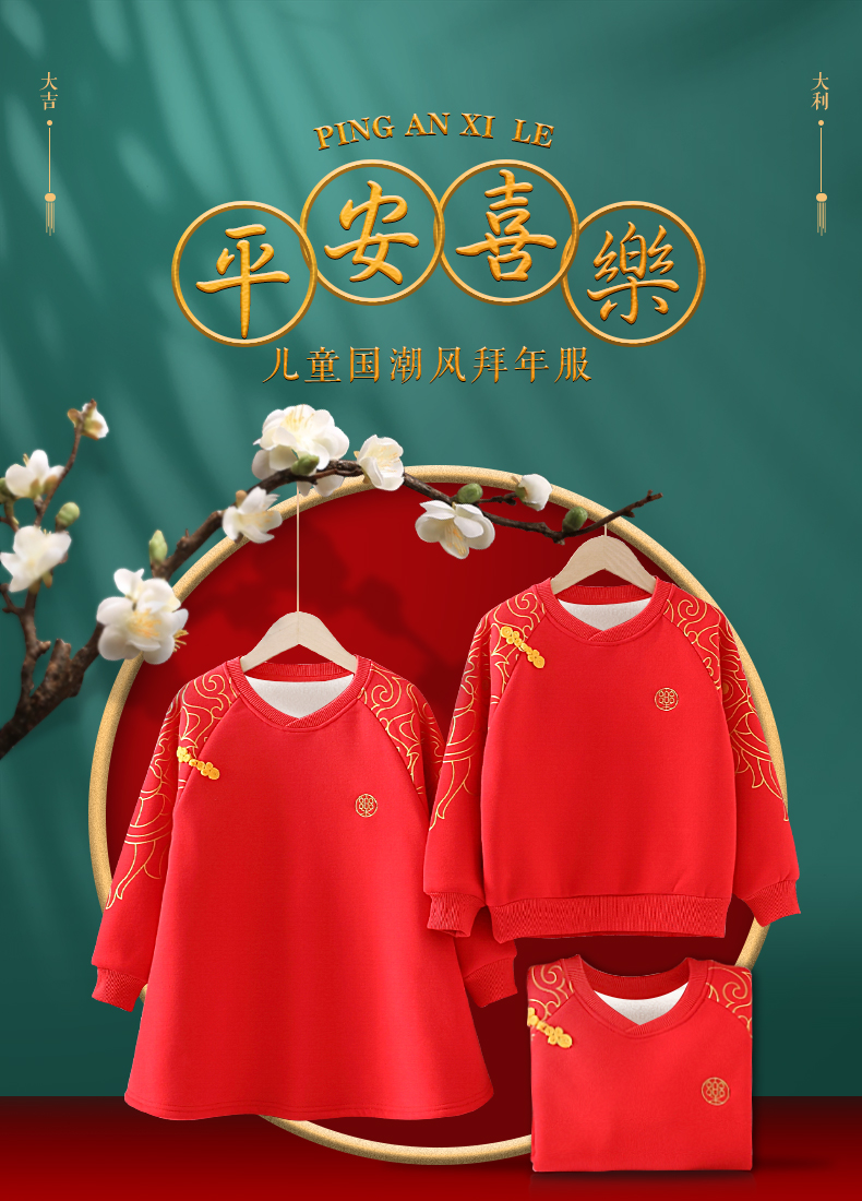 SIIJJEYY冬季儿童新年红色男童女童国风拜年服100%