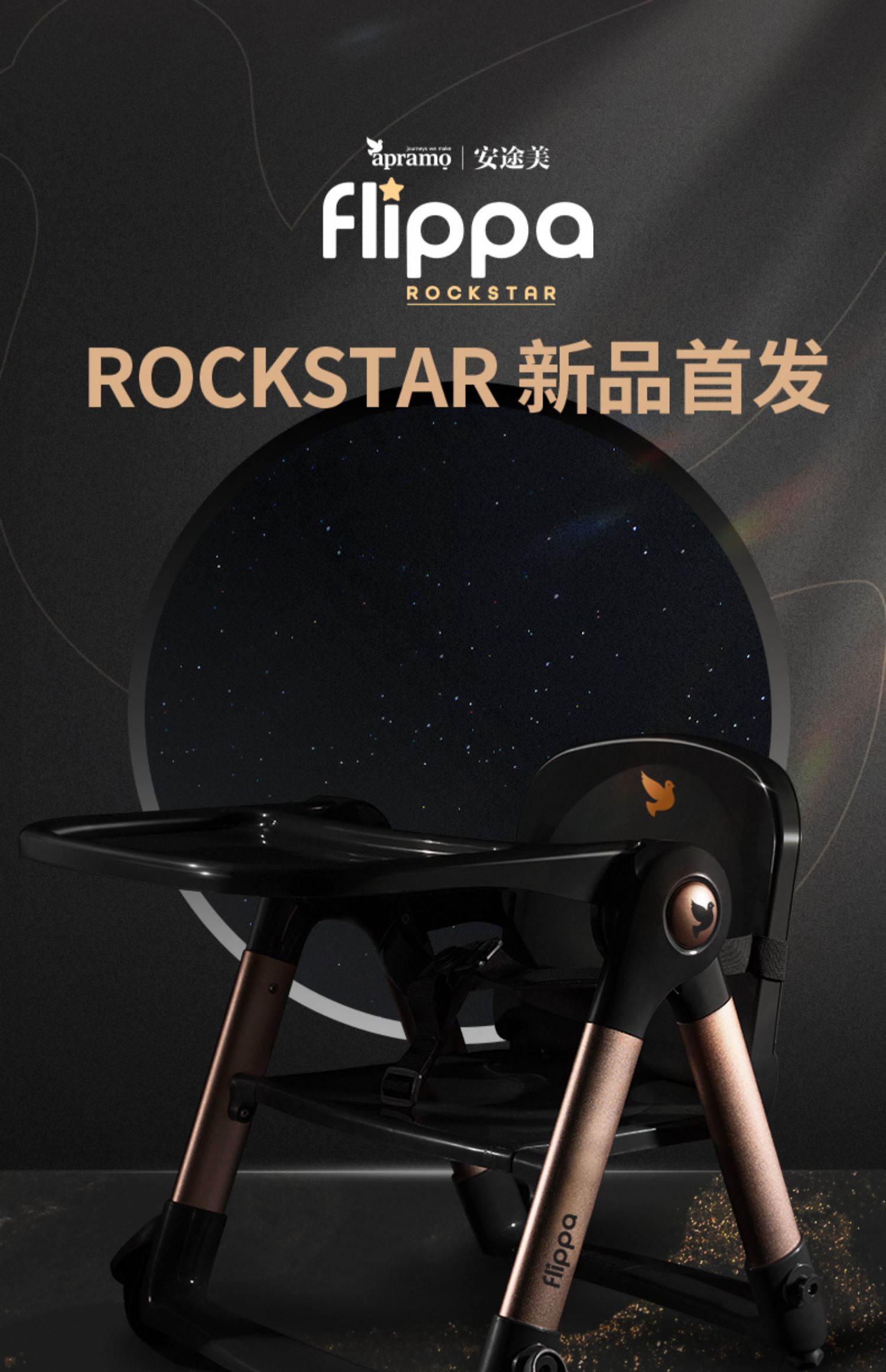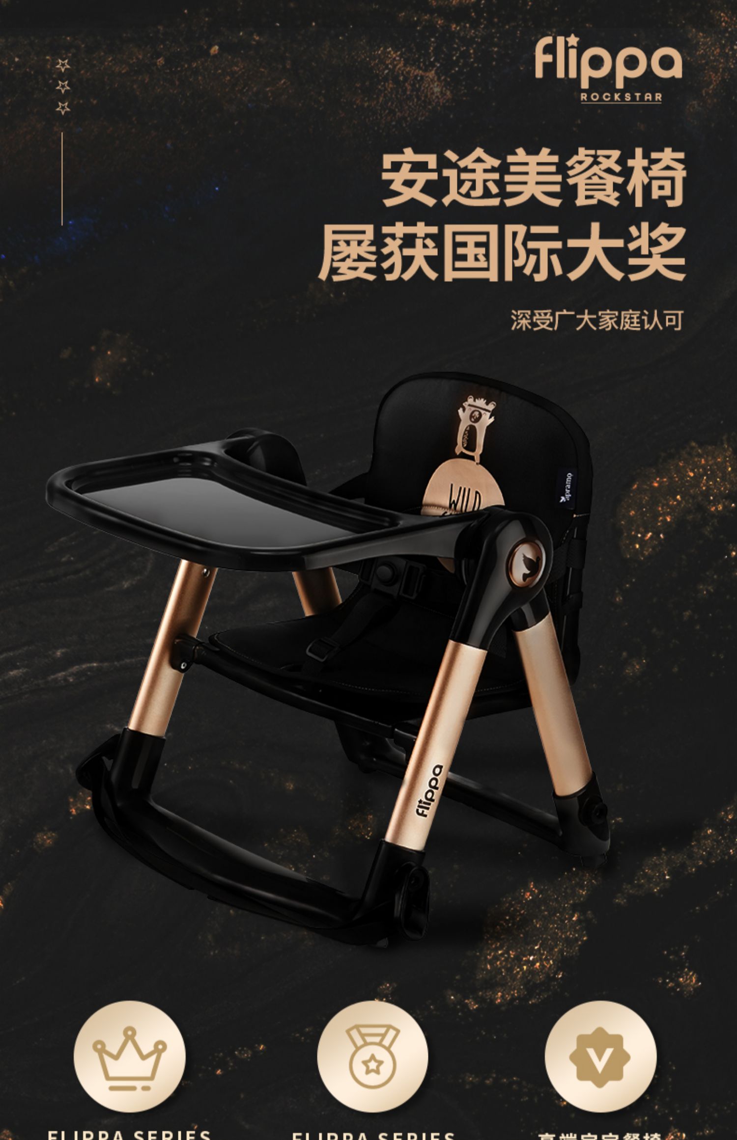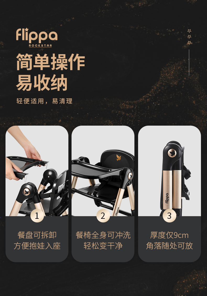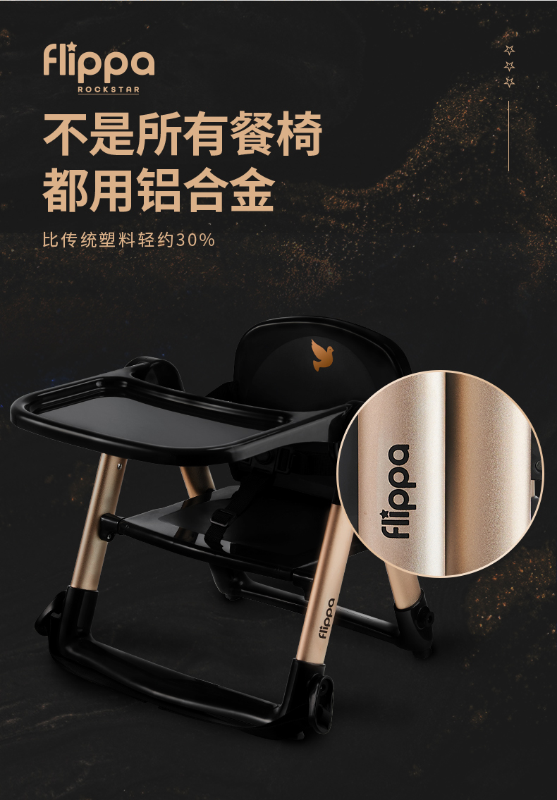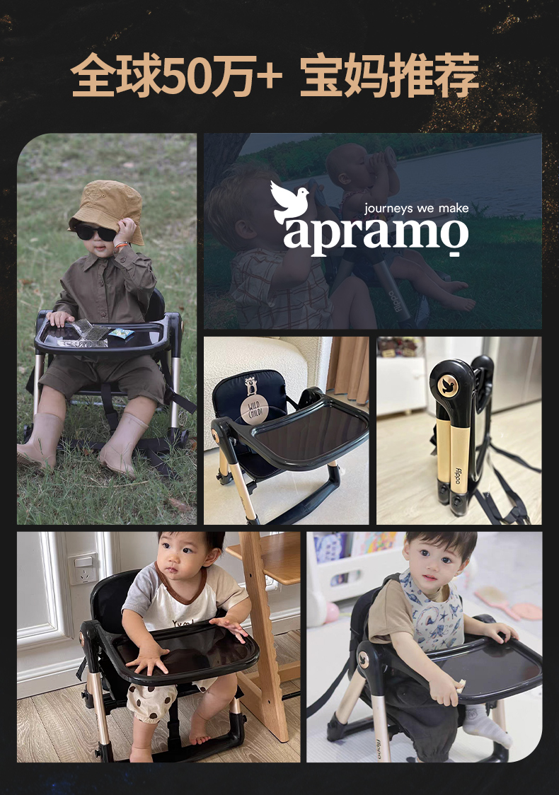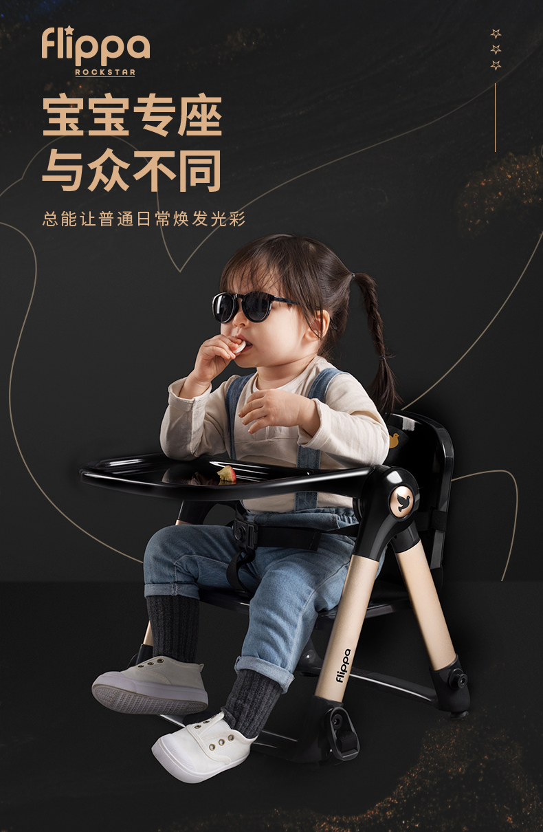 【flippa rockstar】Apramo安途美宝宝儿童便携式爵士黑金餐椅