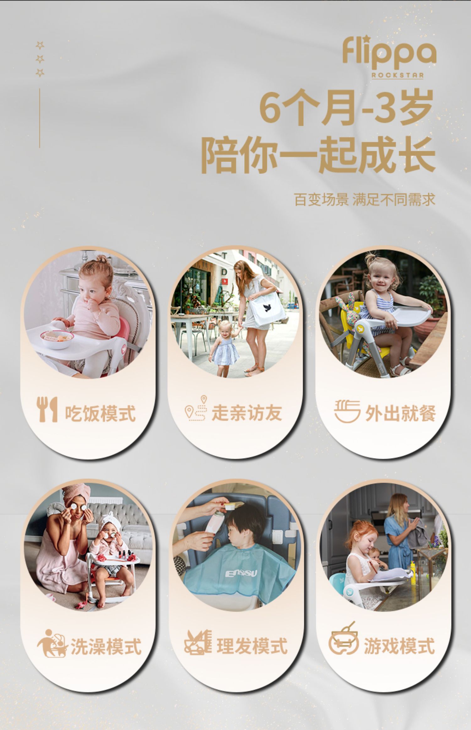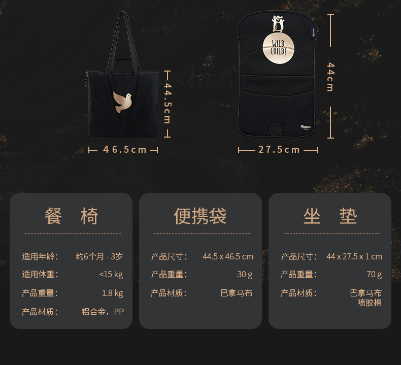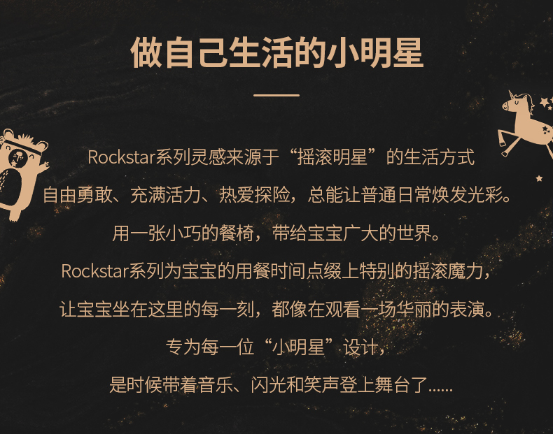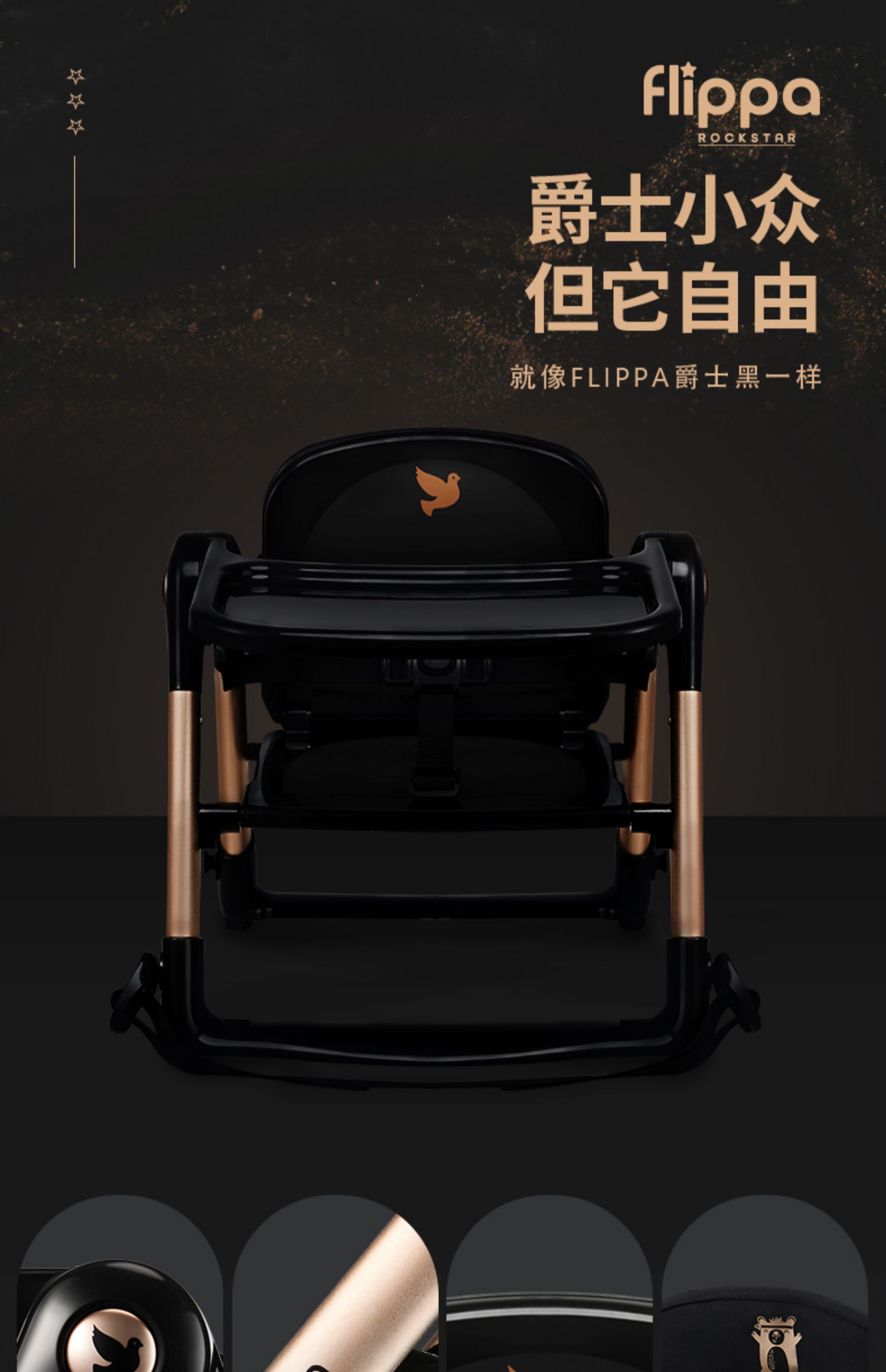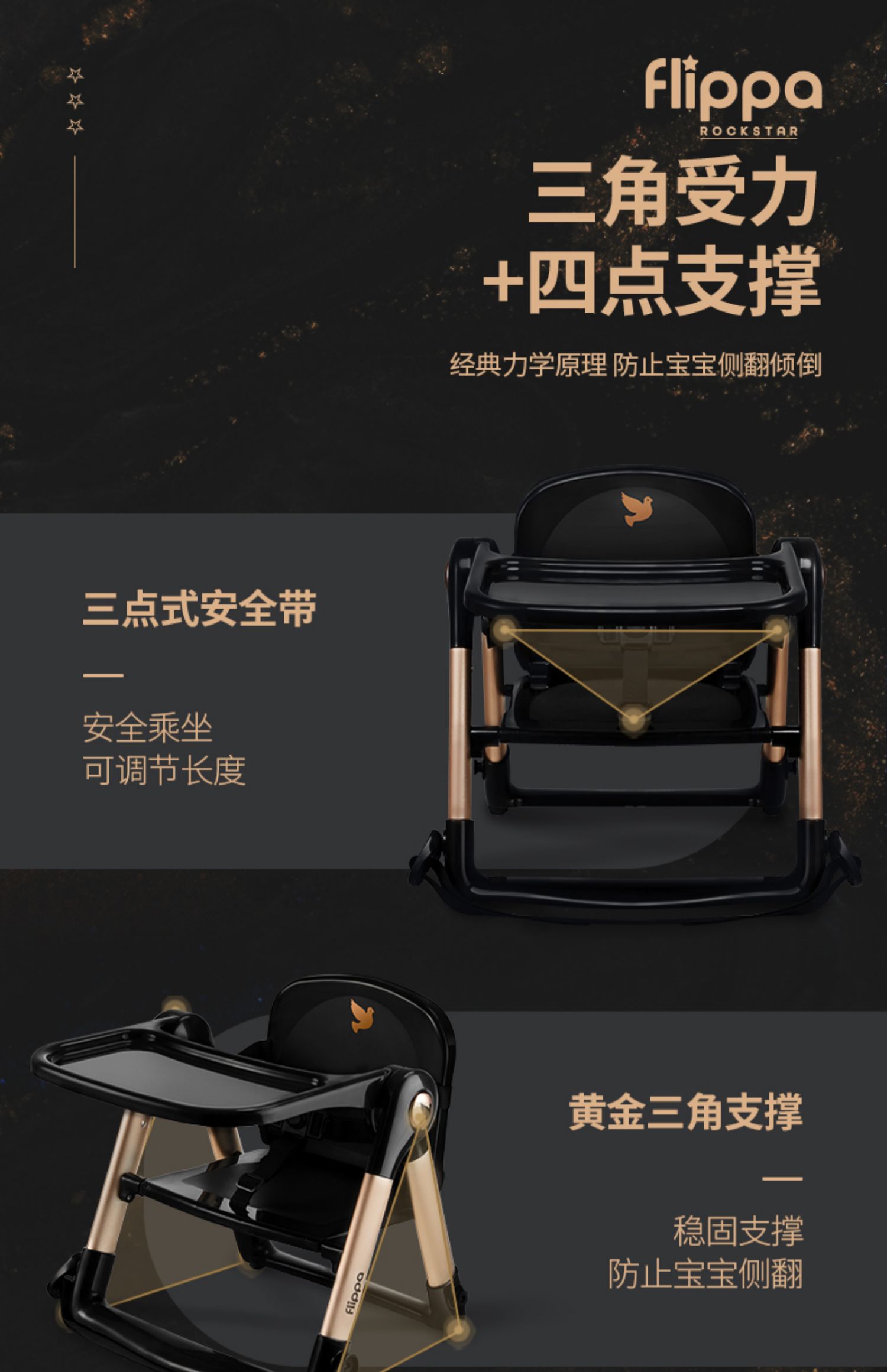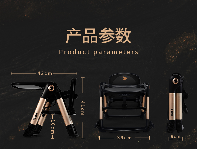 【flippa rockstar】Apramo安途美宝宝儿童便携式爵士黑金餐椅