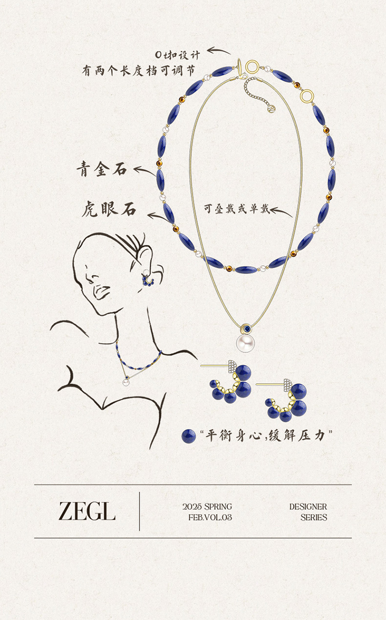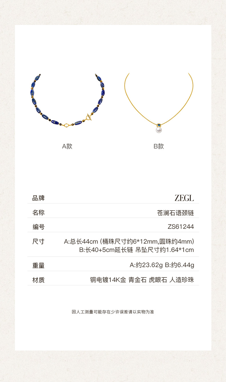 ZEGL蓝调系列人造珍珠项链女款2025新款闪锆锁骨链百搭颈链配饰品