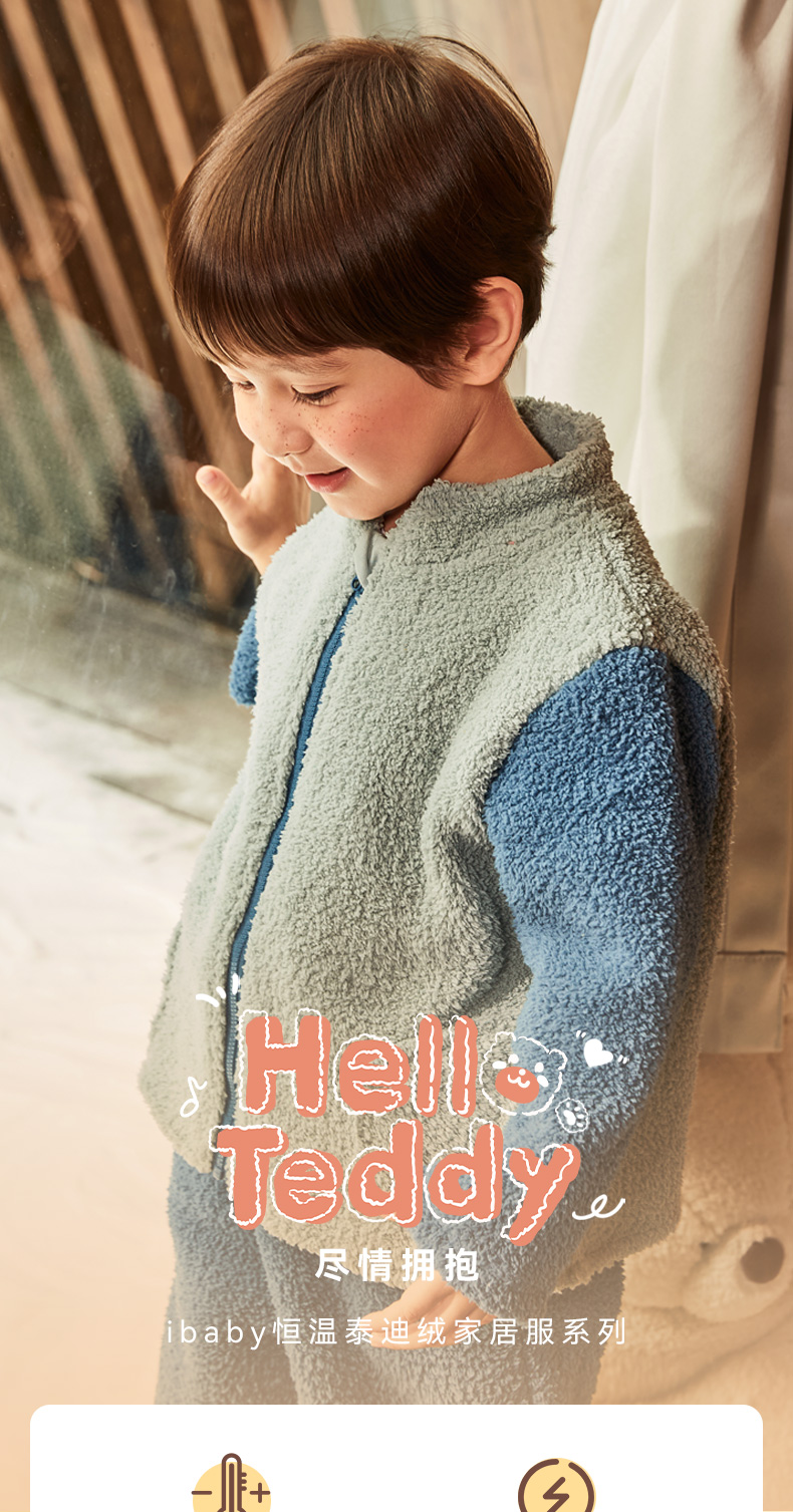 【58元任选2件】i-baby恒温儿童 保暖立领套装 家居服秋冬新款泰迪绒居家睡衣舒适春秋外穿