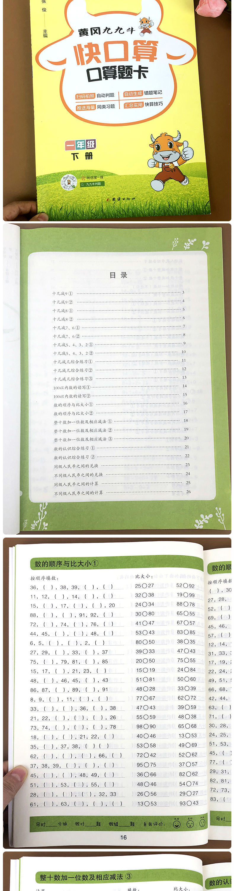 本书以j育部统编小学一年级下册数学教材为主进行编写,紧扣教材知识点和大纲教学、考察要点。具体分为20以内的退位减法、100以内数的认识、认识人民币、100以内的加法和减法等几部分内容。具体依据教材的知识点进行科学编排,内容难易度逐步提升。每节练习的题量以大约5到10分钟完成为宜,练习题后面设置错题强化部分,可帮助学生及时修改错题,同时本书引入拍照判题的技术,仅扫描二维码即可获知准确率,更高效地帮助家长及学生完成小学数学的计算练习。