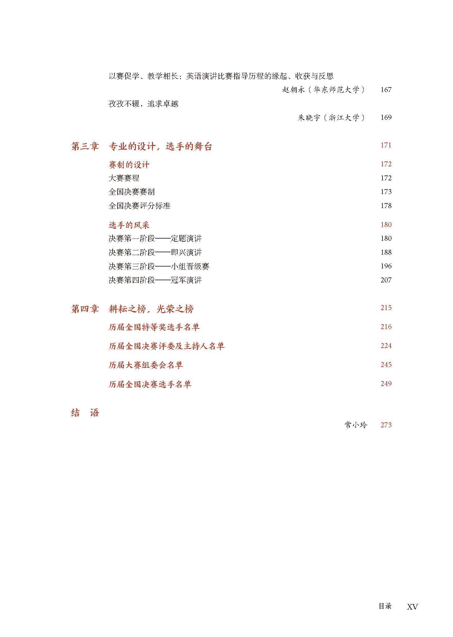 内容简介:作为“外研社·国才杯”全国英语演讲大赛20年发展回眸,本书以时为经,以事为纬,从主办方、评委、选手、指导教师和院校等不同视角,记录大赛的创设背景和发展变迁,阐明大赛的使命宗旨和设计理念,讲述大赛的难忘瞬间和动人故事。