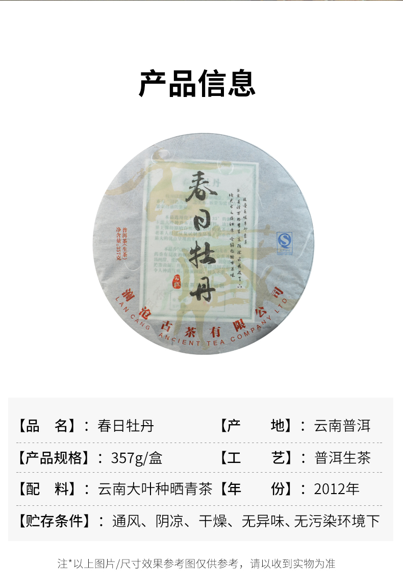 澜沧古茶2012年春日牡丹古树茶普洱茶生茶大饼357g