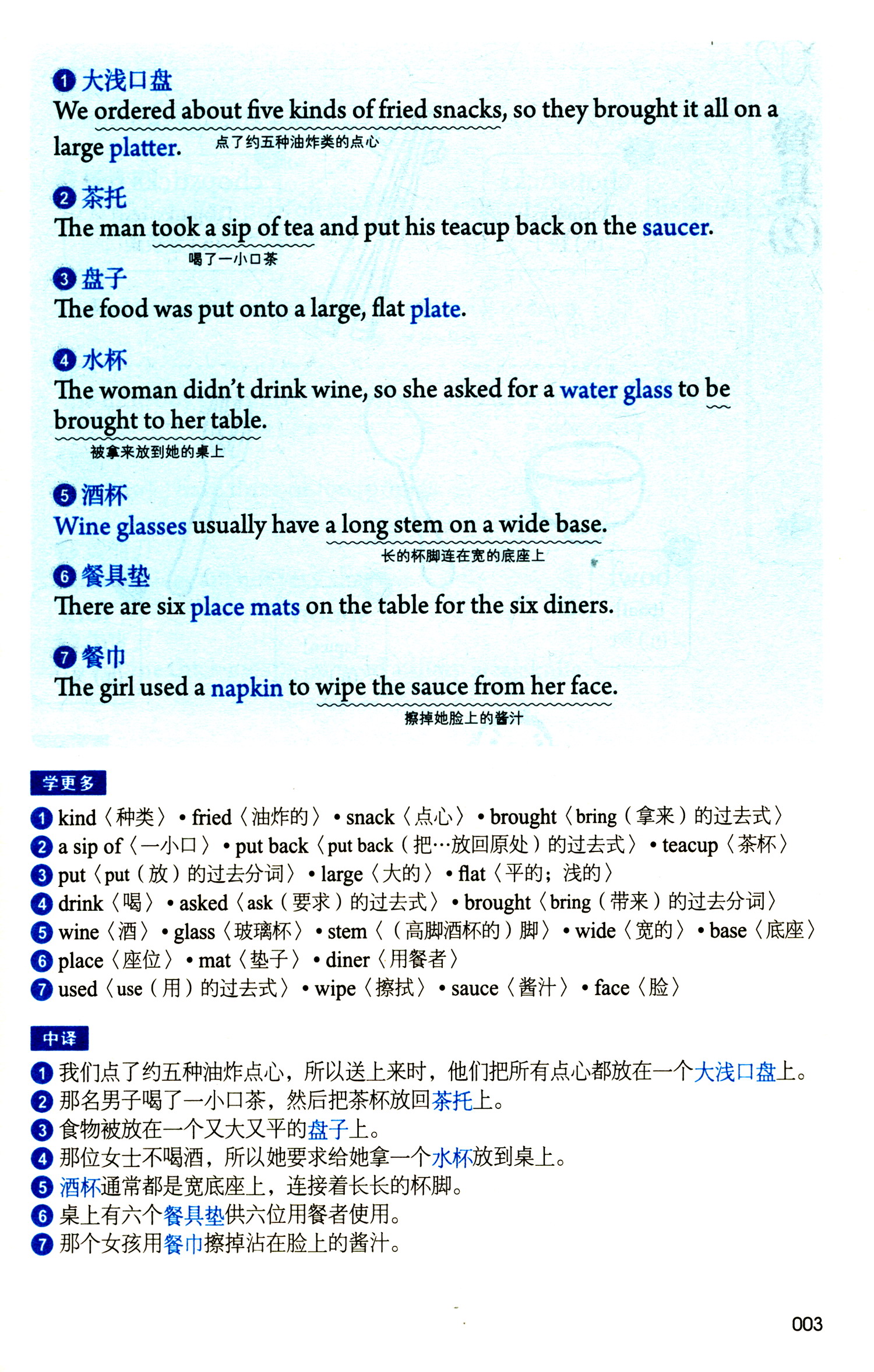 针对经典例句进行详细解析,包括单词注释、固定短语和常用语法、句型等,学单词的同时不忘增加其他语法知识。