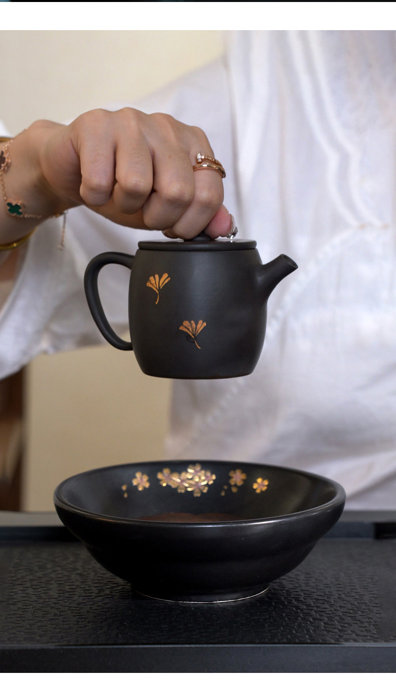 南越浅碗/壶承6#/哑黑 金樱花 干泡盘果盘茶点盘