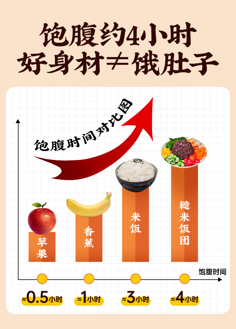 对于健身者而言,糙米饭团是完美的能量补给站。它低GI的特性能够提供缓慢释放的能量,避免训练中的血糖波动,同时促进肌肉修复和增长