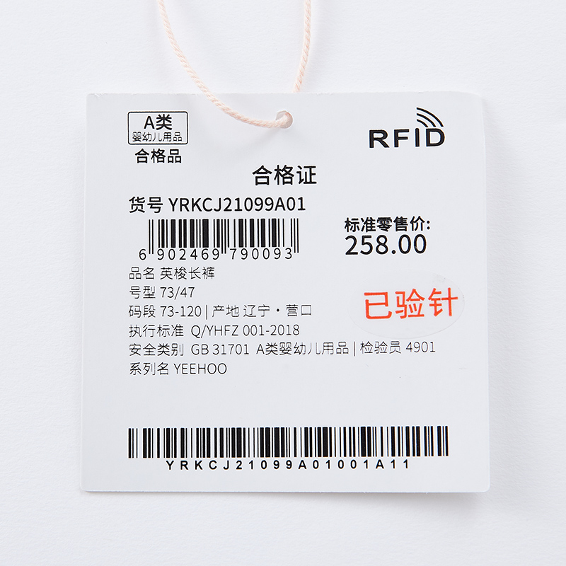 英氏-童衣类(夏)E1英梭长裤 花灰100CM