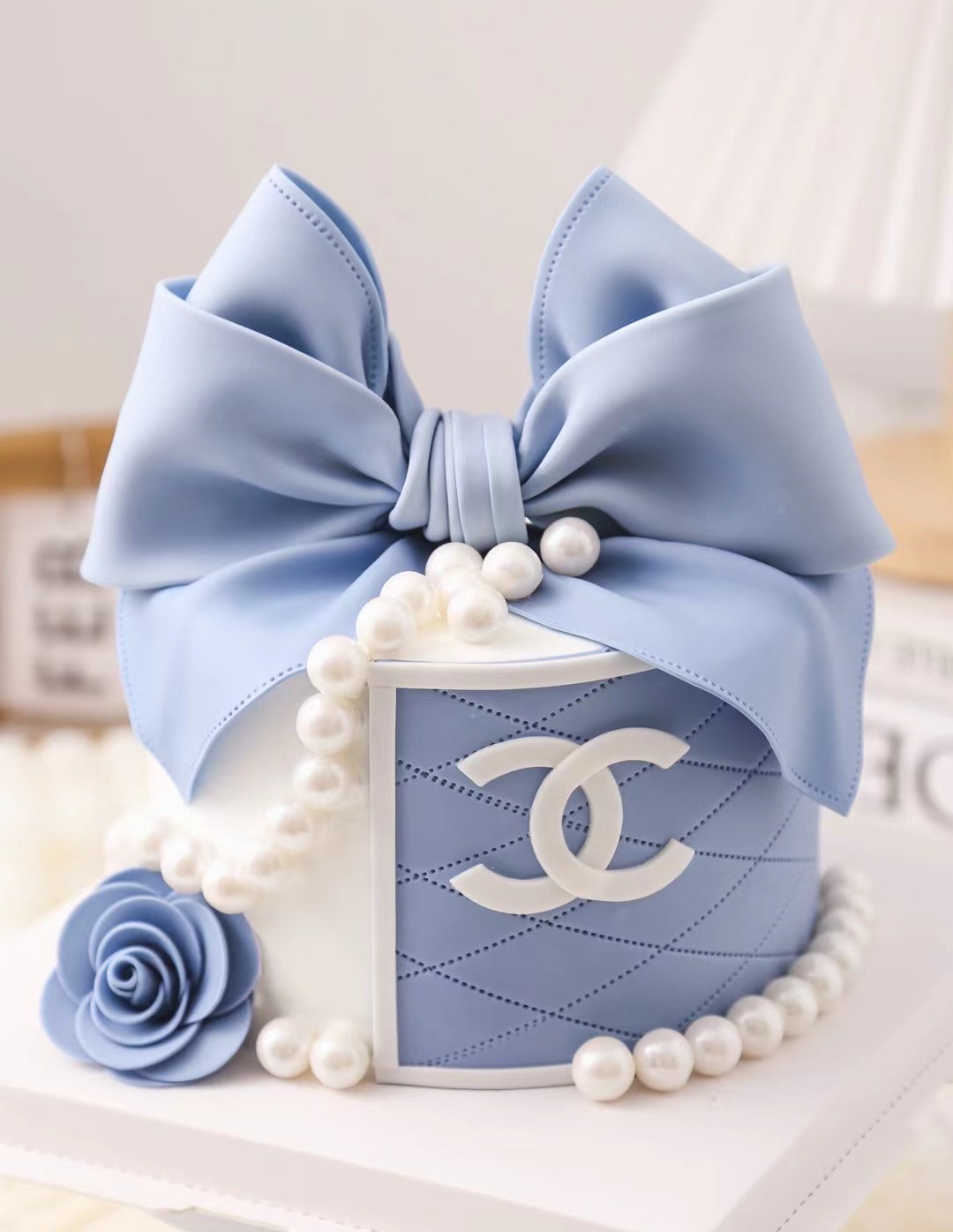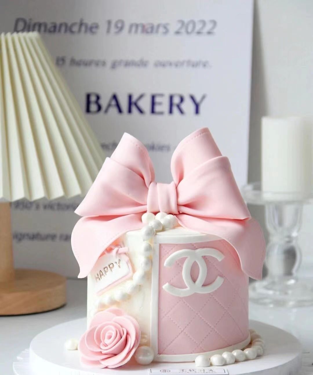 粉色香奈蝴蝶结-翻糖造型蛋糕