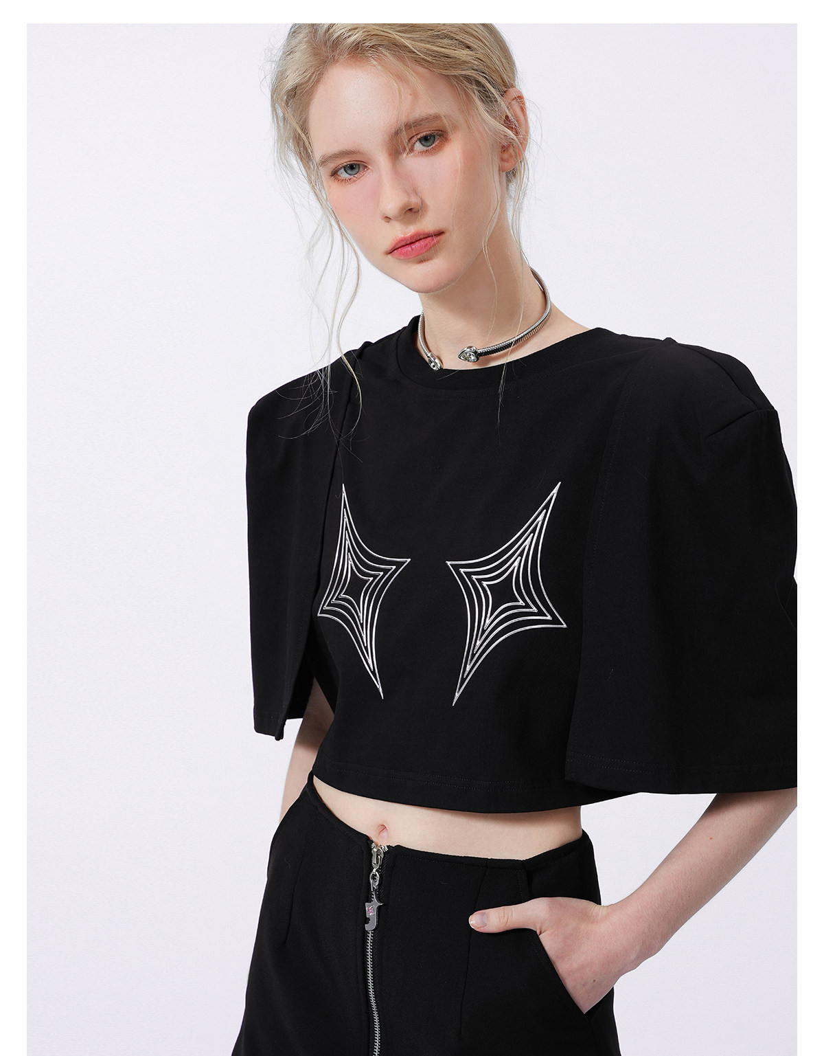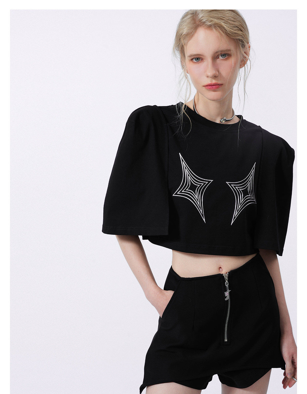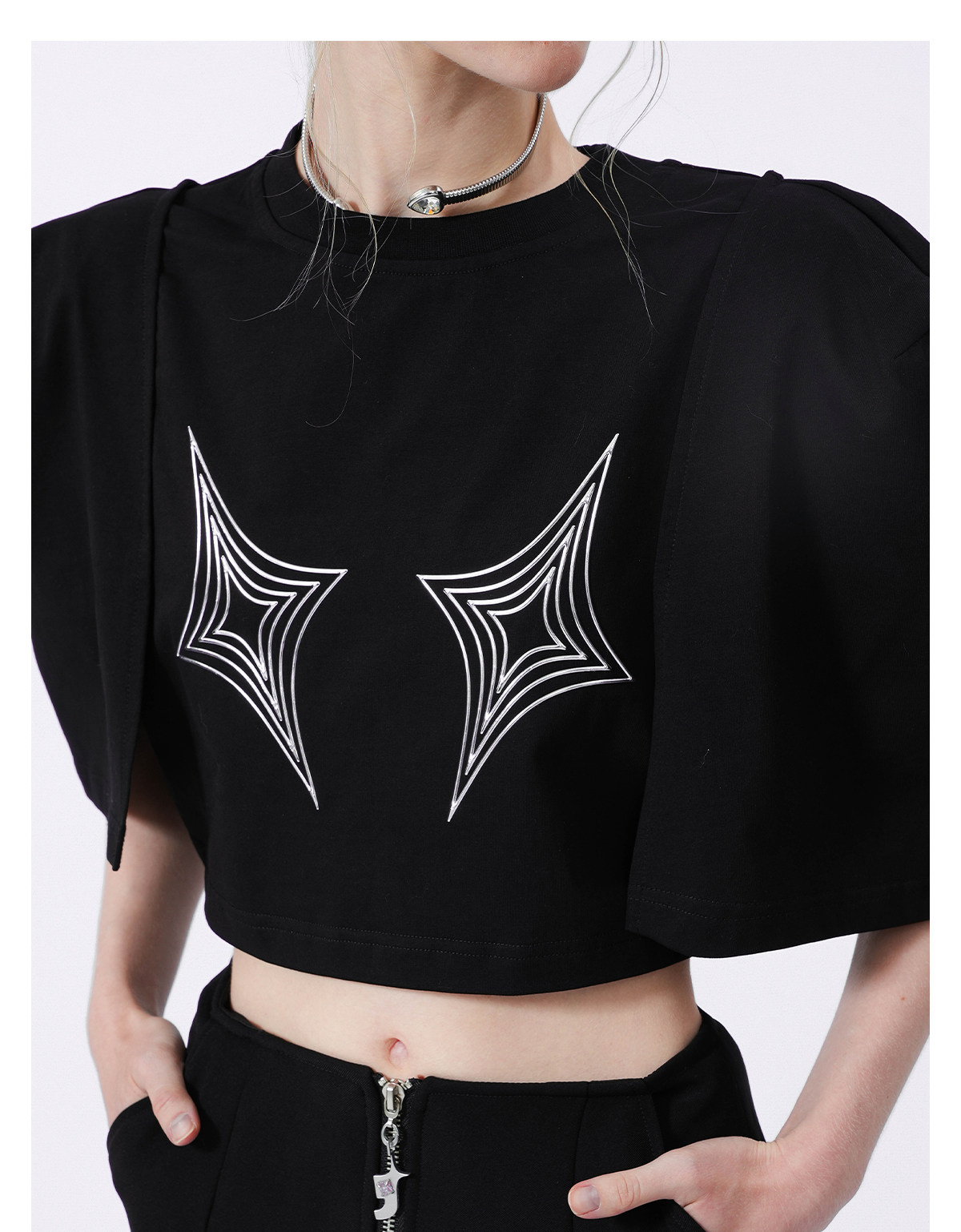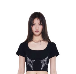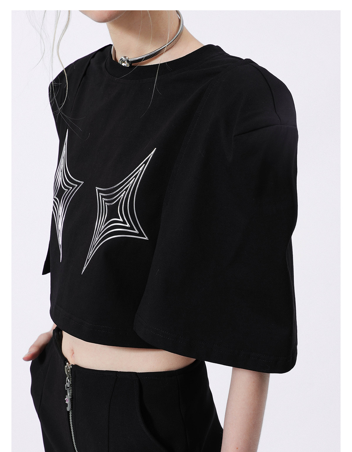FTT FlyTheTruth四芒星陷阱设计感纯棉短袖T恤女夏季打底短款上衣