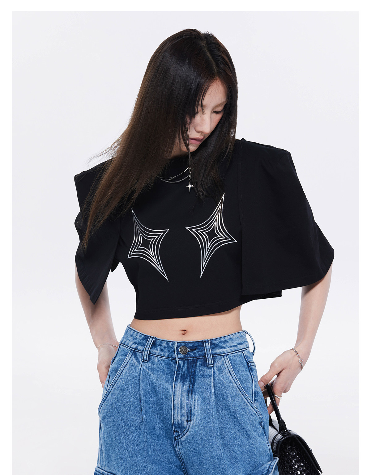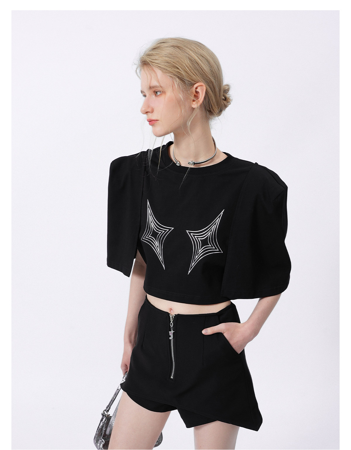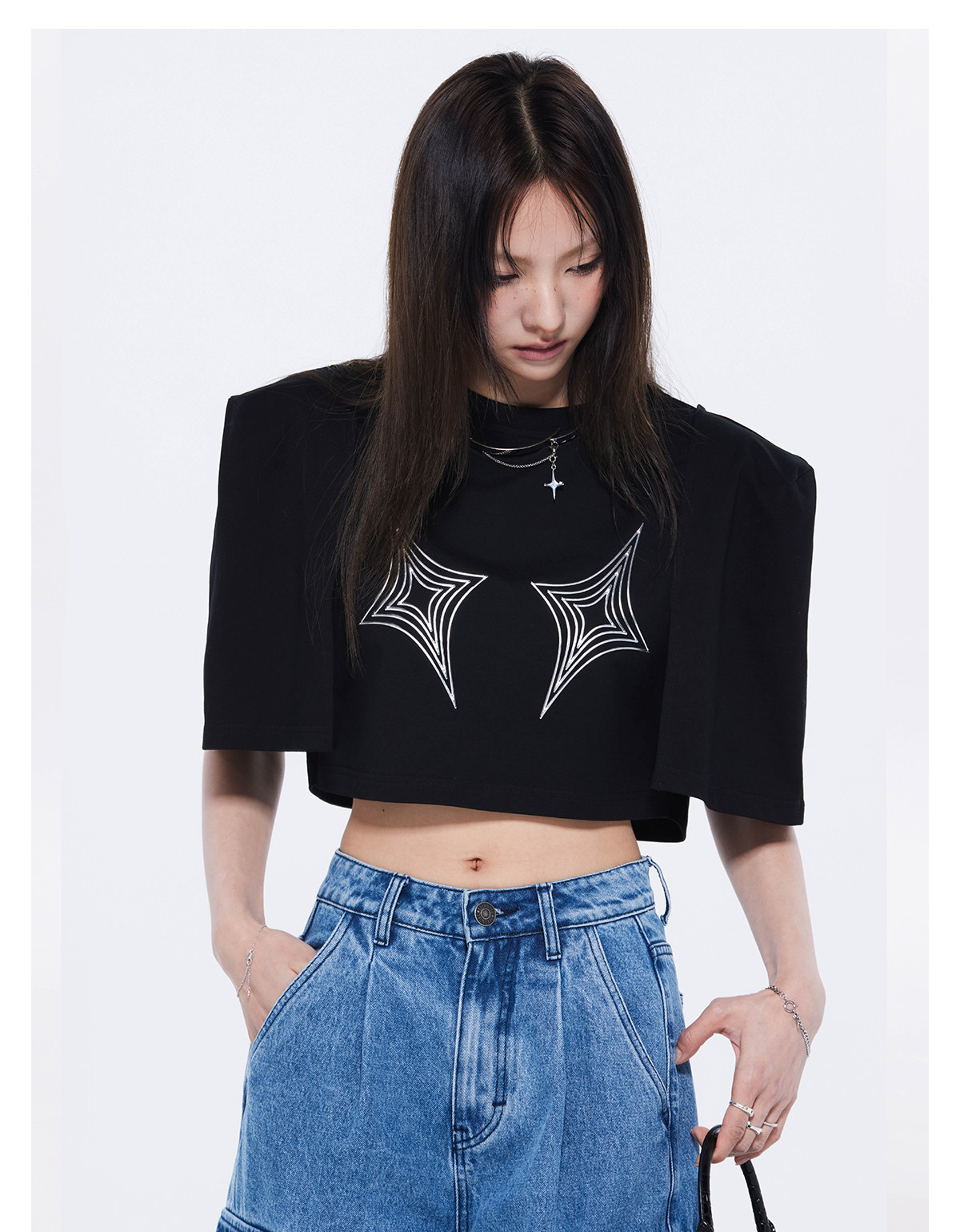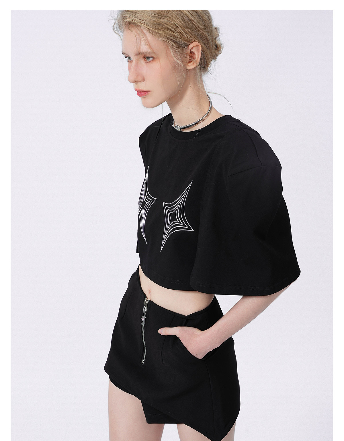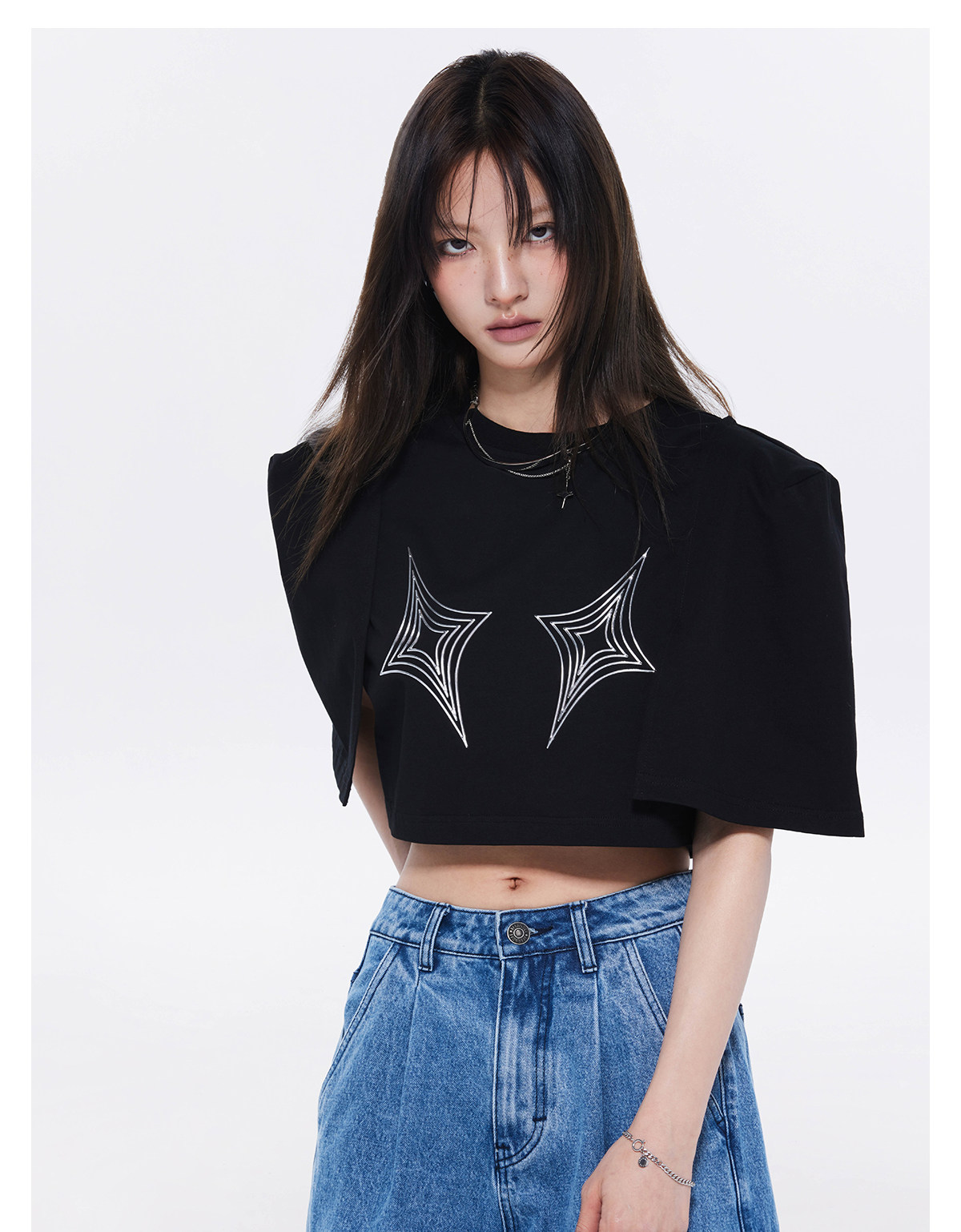 FTT FlyTheTruth四芒星陷阱设计感纯棉短袖T恤女夏季打底短款上衣