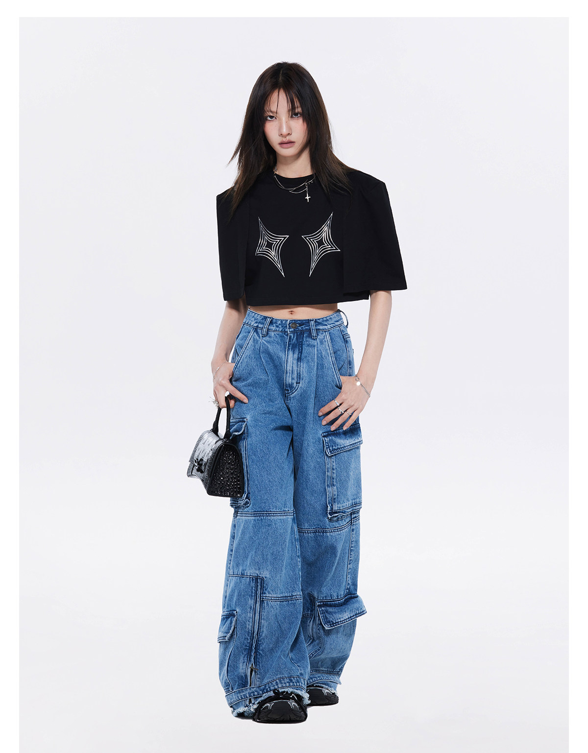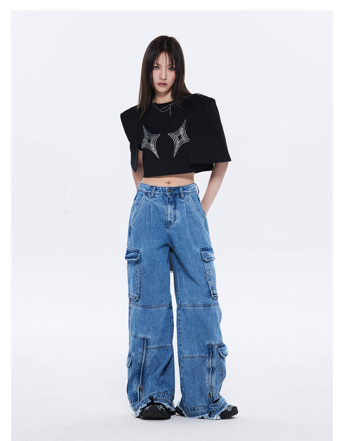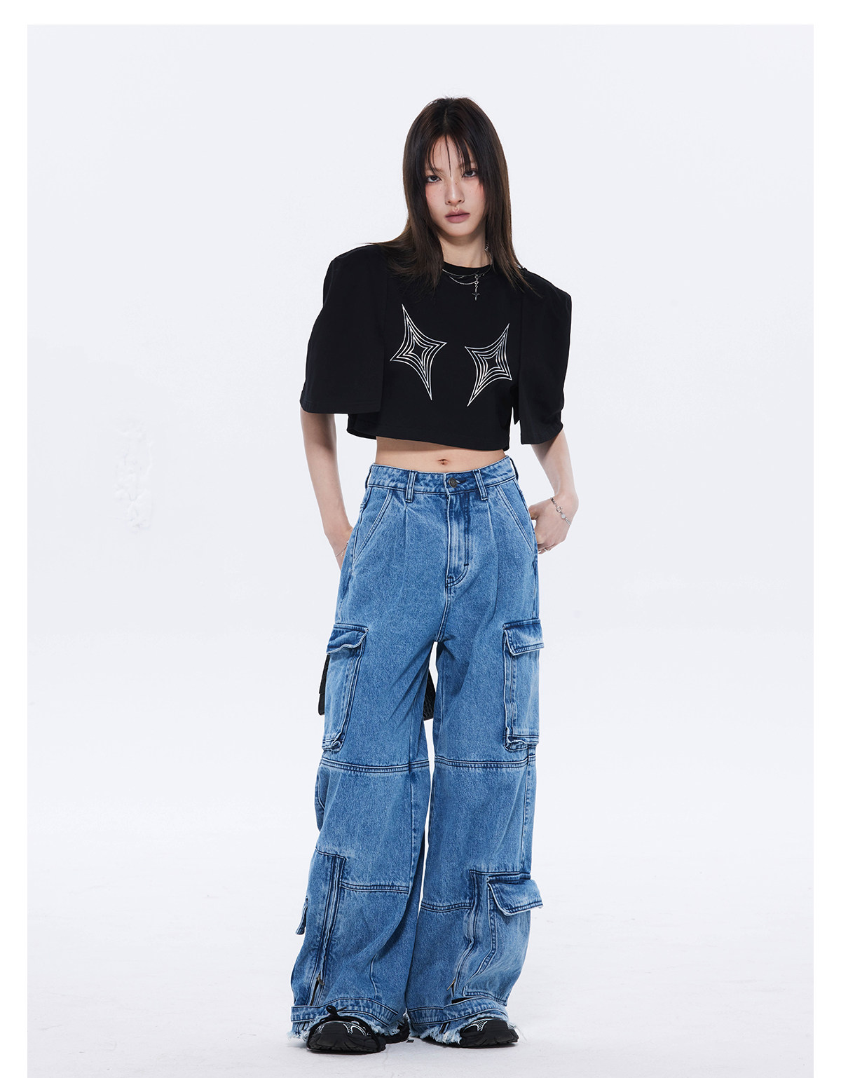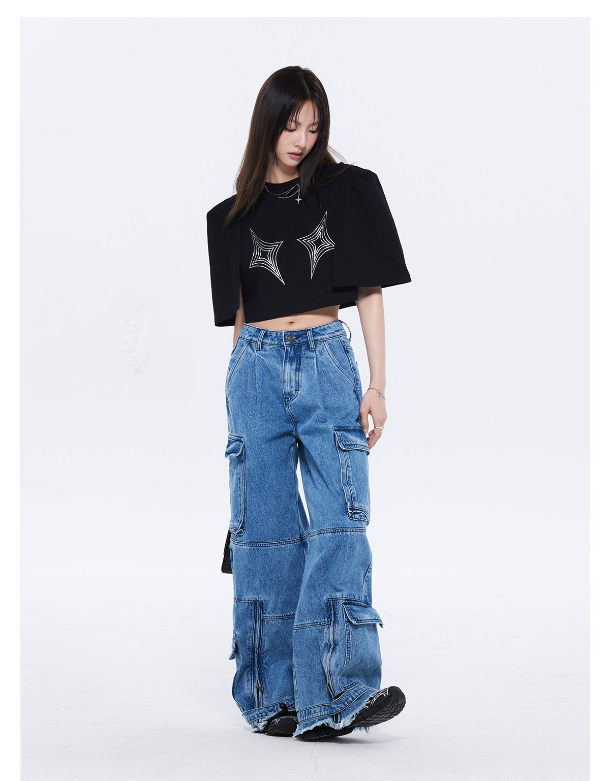 FTT FlyTheTruth四芒星陷阱设计感纯棉短袖T恤女夏季打底短款上衣