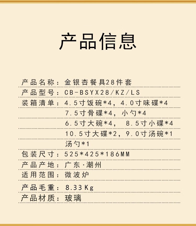 【分仓直发包邮】康宁冰萃玲珑银杏餐具28件套CB-BSYX28/KZ/LS