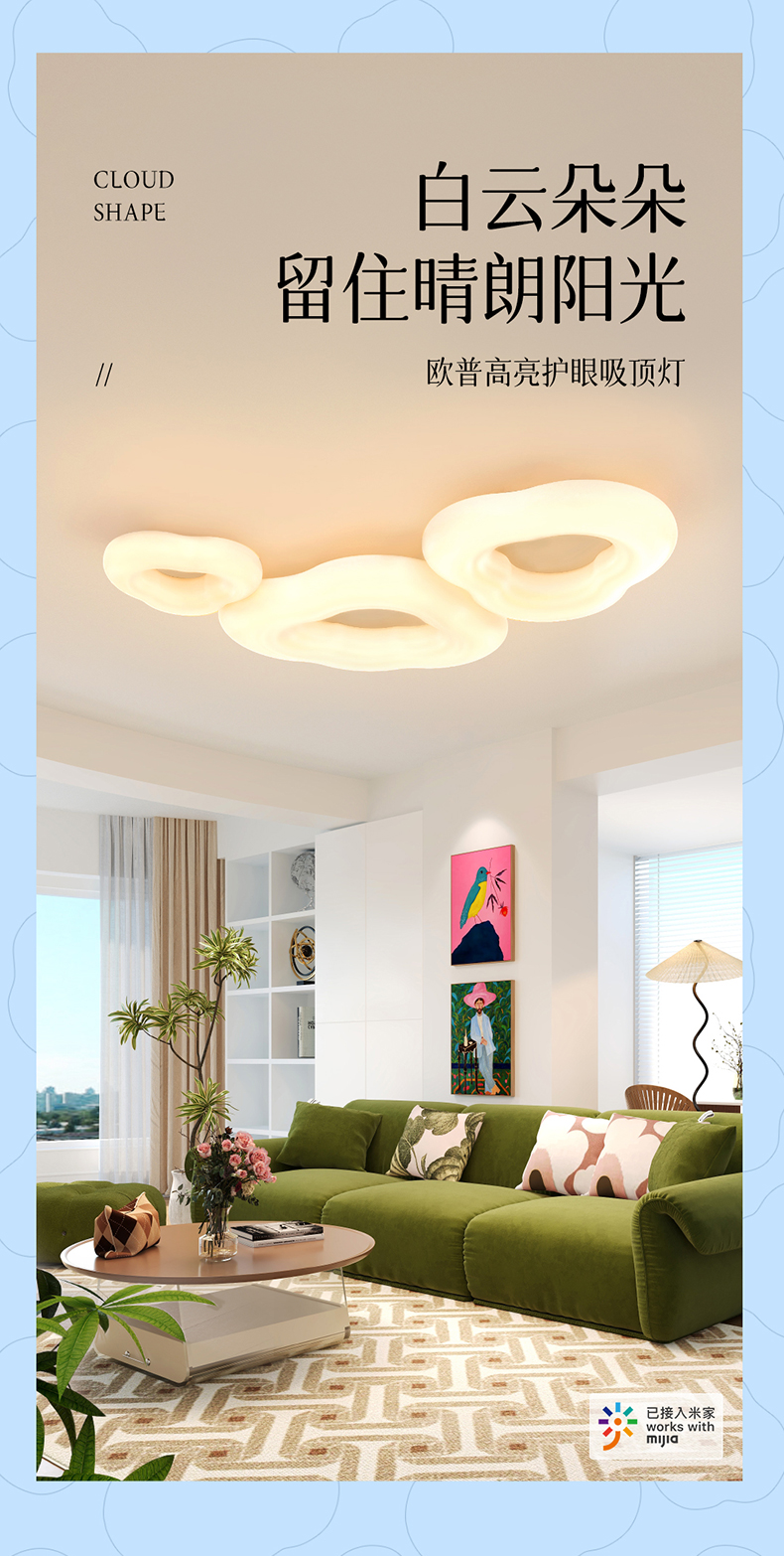欧普(OPPLE)白云朵朵卧室奶油风儿童房吸顶灯