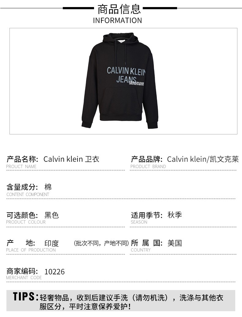 卡尔文·克莱恩(Calvin Klein)CK男士休闲时尚印花卫衣 10226
