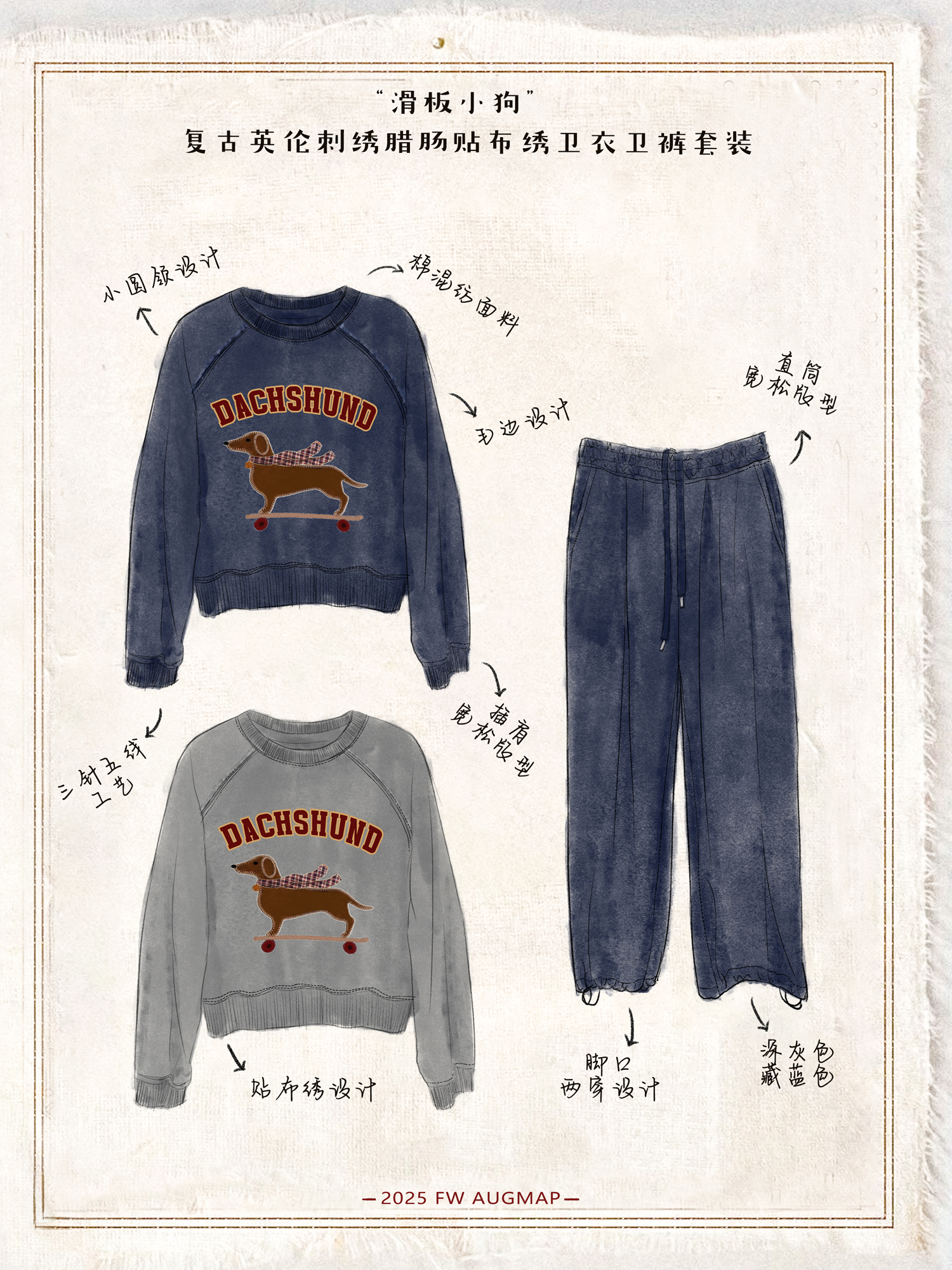 浮生八记/25C115/25C113/复古英伦刺绣腊肠贴布绣卫衣卫裤