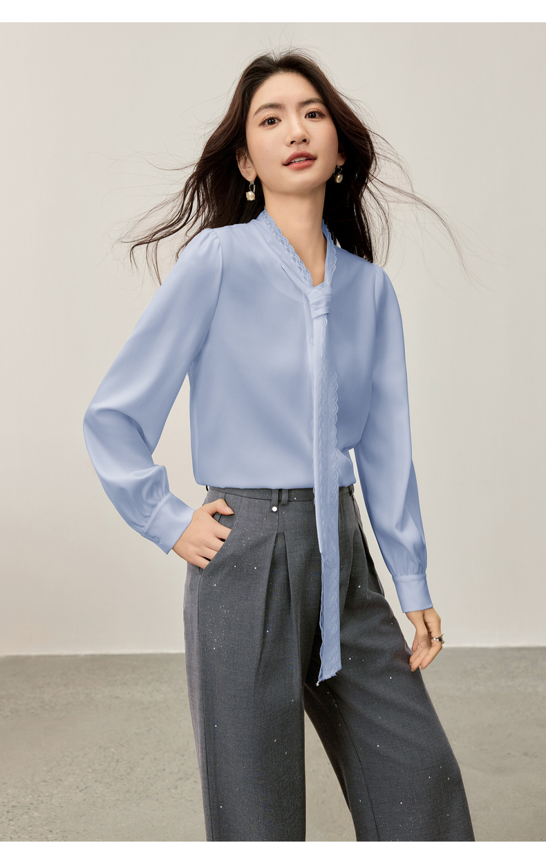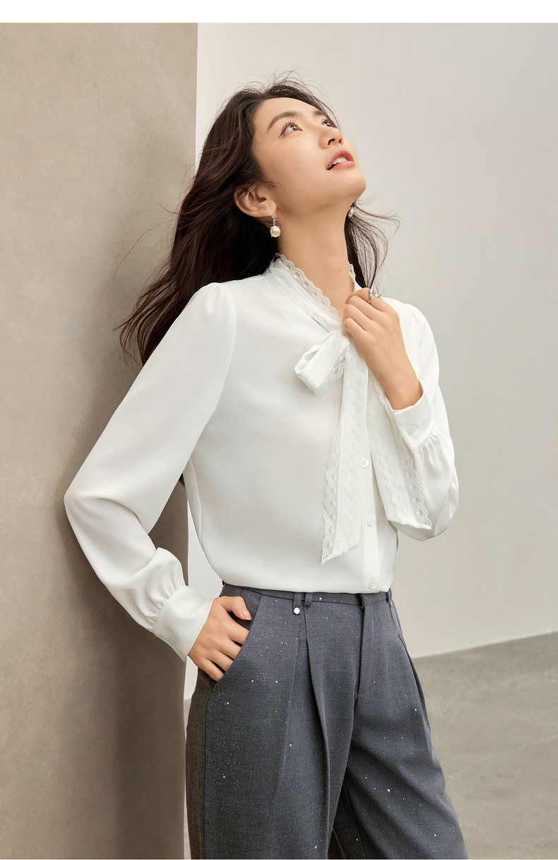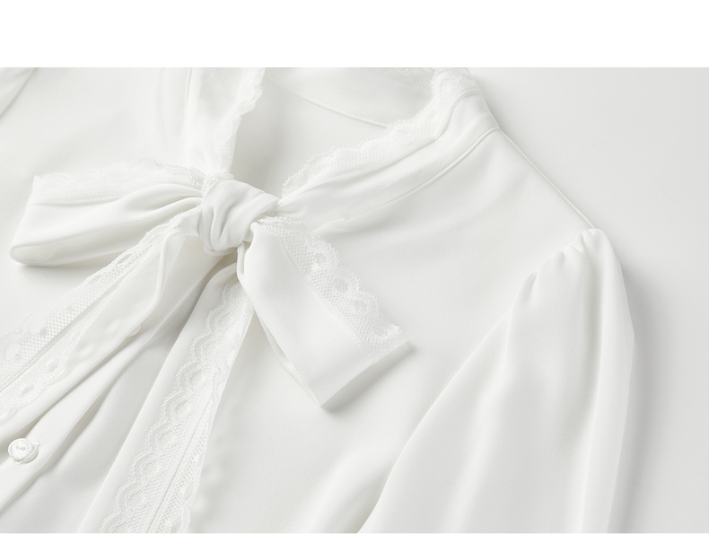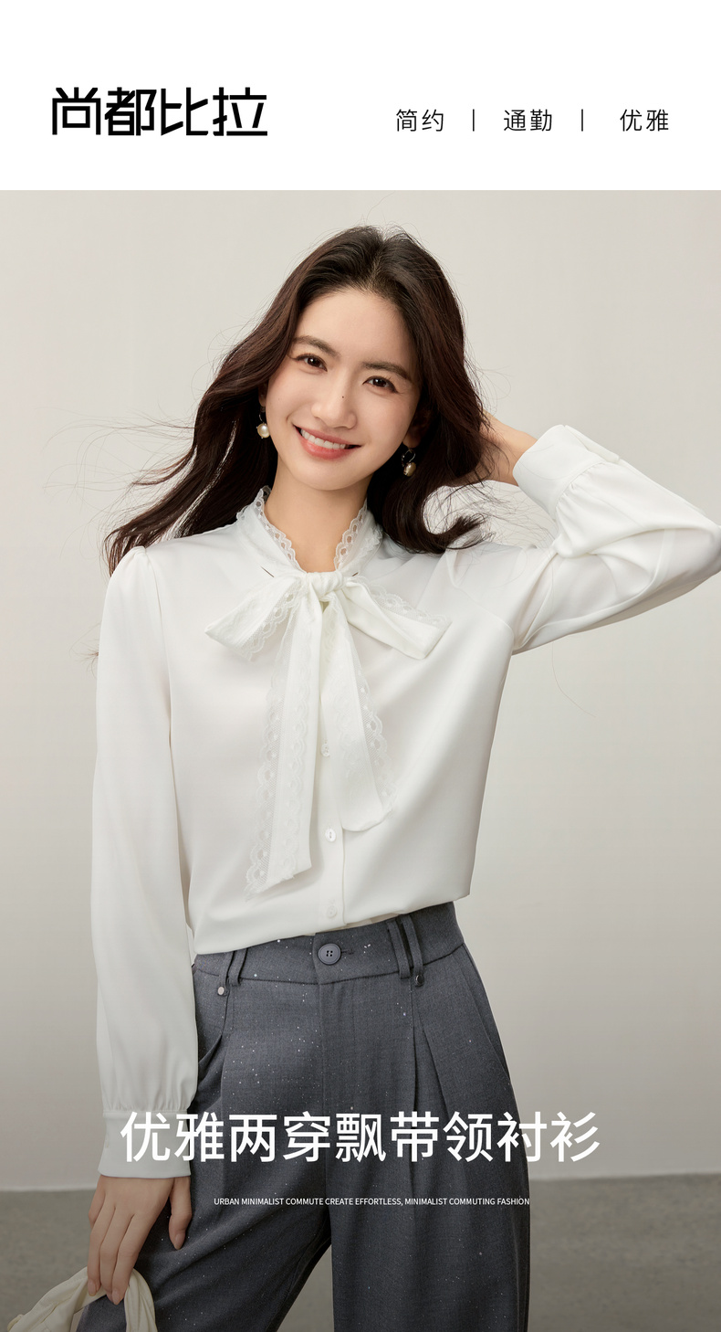 【内购】【花边飘带】优雅通勤两穿飘带领贝壳扣泡泡袖长袖衬衫-153CF2411