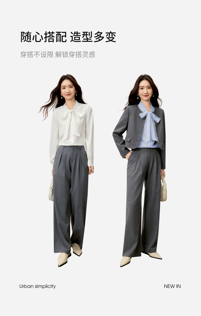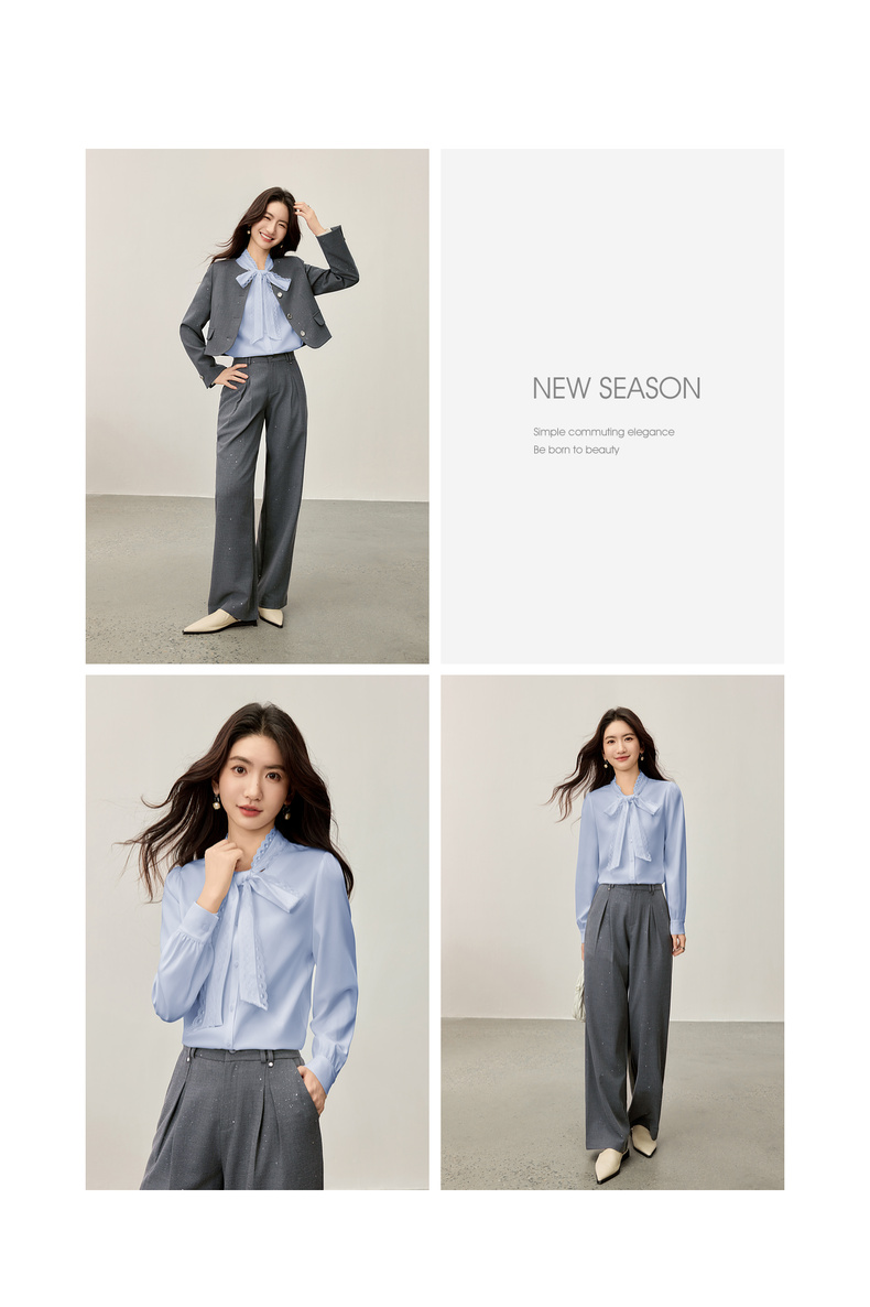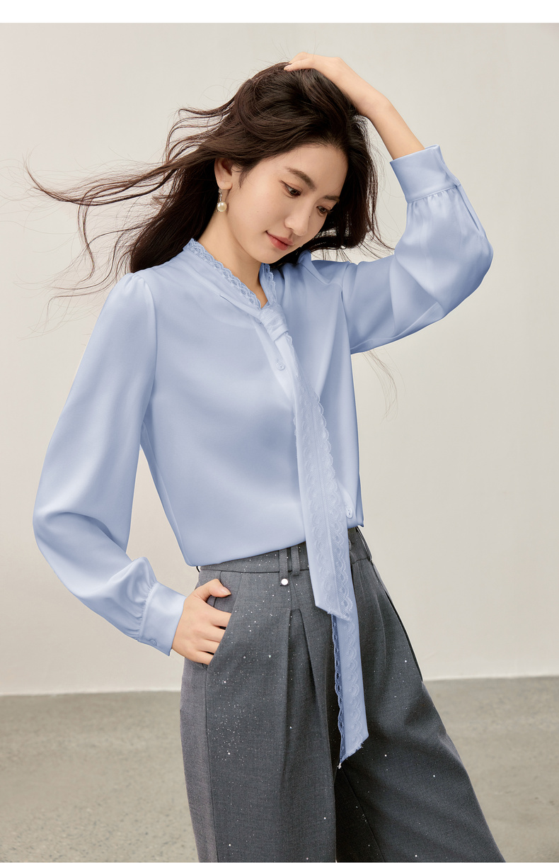 【内购】【花边飘带】优雅通勤两穿飘带领贝壳扣泡泡袖长袖衬衫-153CF2411